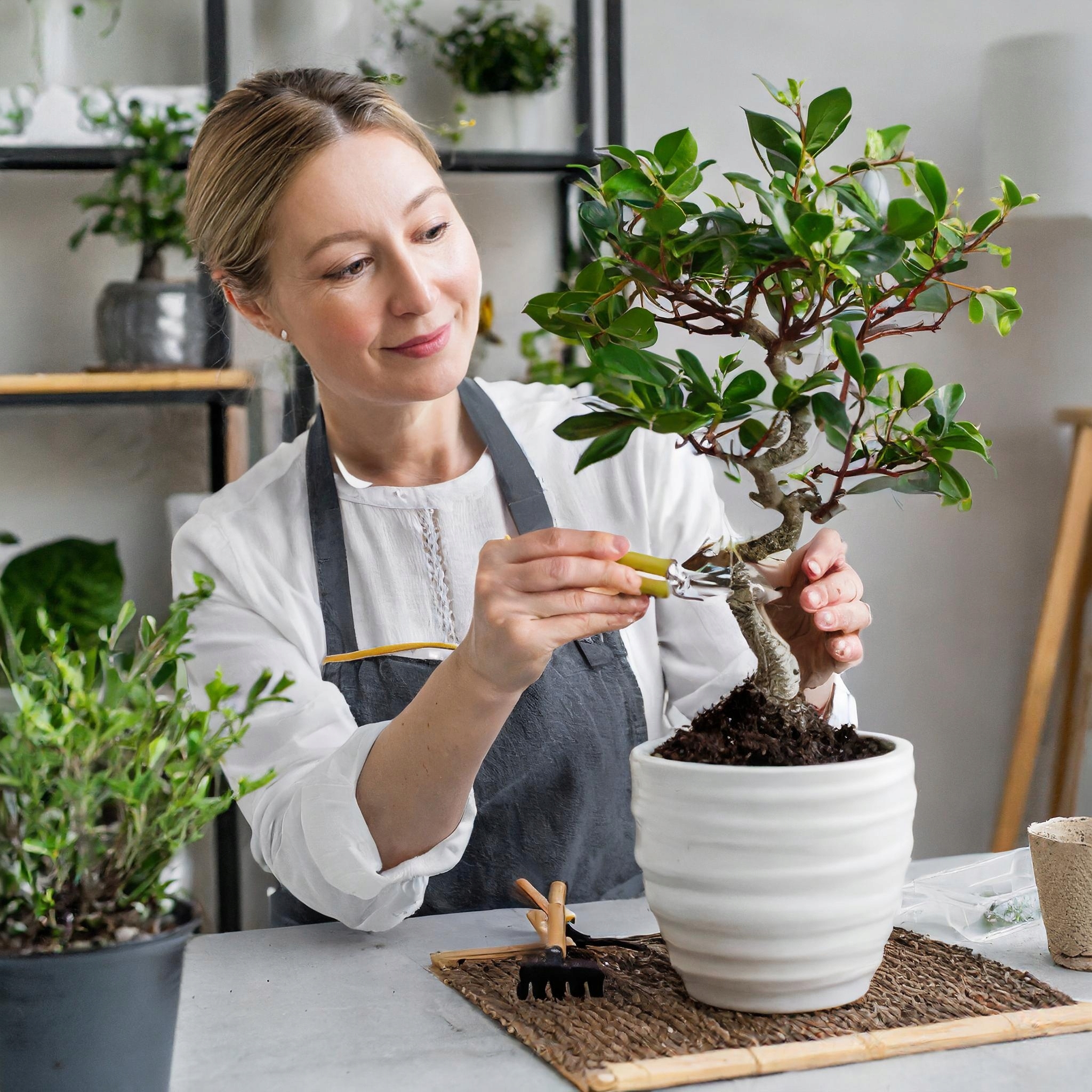 - Обрізка: Регулярна обрізка має вирішальне значення для формування женьшеню бонсай Фікуса. Надмірно зростаючі гілки слід видалити, щоб підтримувати пропорції та гармонійний вигляд дерева. Таким чином, ви можете стати цікавими та природними -на вигляд звивистих або гофрованих форм. і підтримувати пропорції Bonsai. Ті, хто занадто щільно росте, допомагають підтримувати здоров'я та естетику бонсай Фікус Гінснг. рослина.