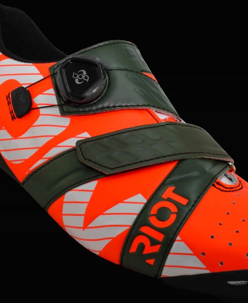 Riot + Boa, єдине взуття для дорожнього руху, створене з вуглецевих композитів, які можна сформувати гаряче. Технічні технічні моделі взуття в BONT, включаючи найбільш анатомічну та біомеханічно побудовану платформу з найбільш ефективною передачею електроенергії, використовуючи конкурентні якості та систему кріплення BOA. Завдяки цьому, це найбільш технічно вдосконалене взуття для базового класу для дорожнього руху.