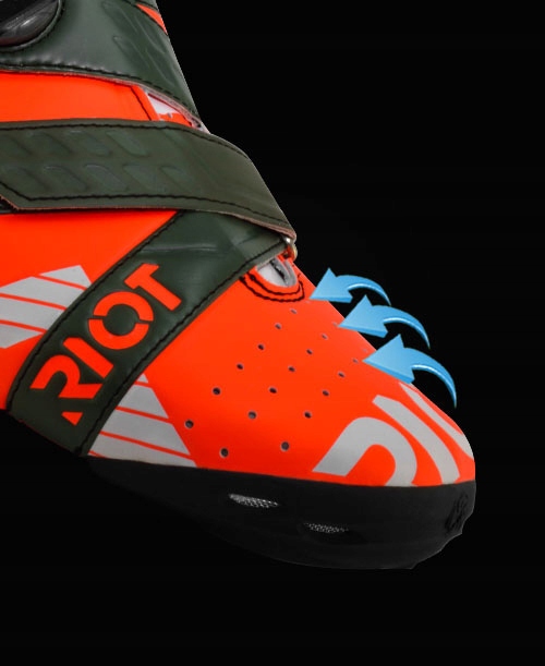 Верхній мікрофібри використовується для забезпечення сильного зовнішнього шару Bont Riot TR +, тоді як сітка вставляє гарантую взуття, що дихає.