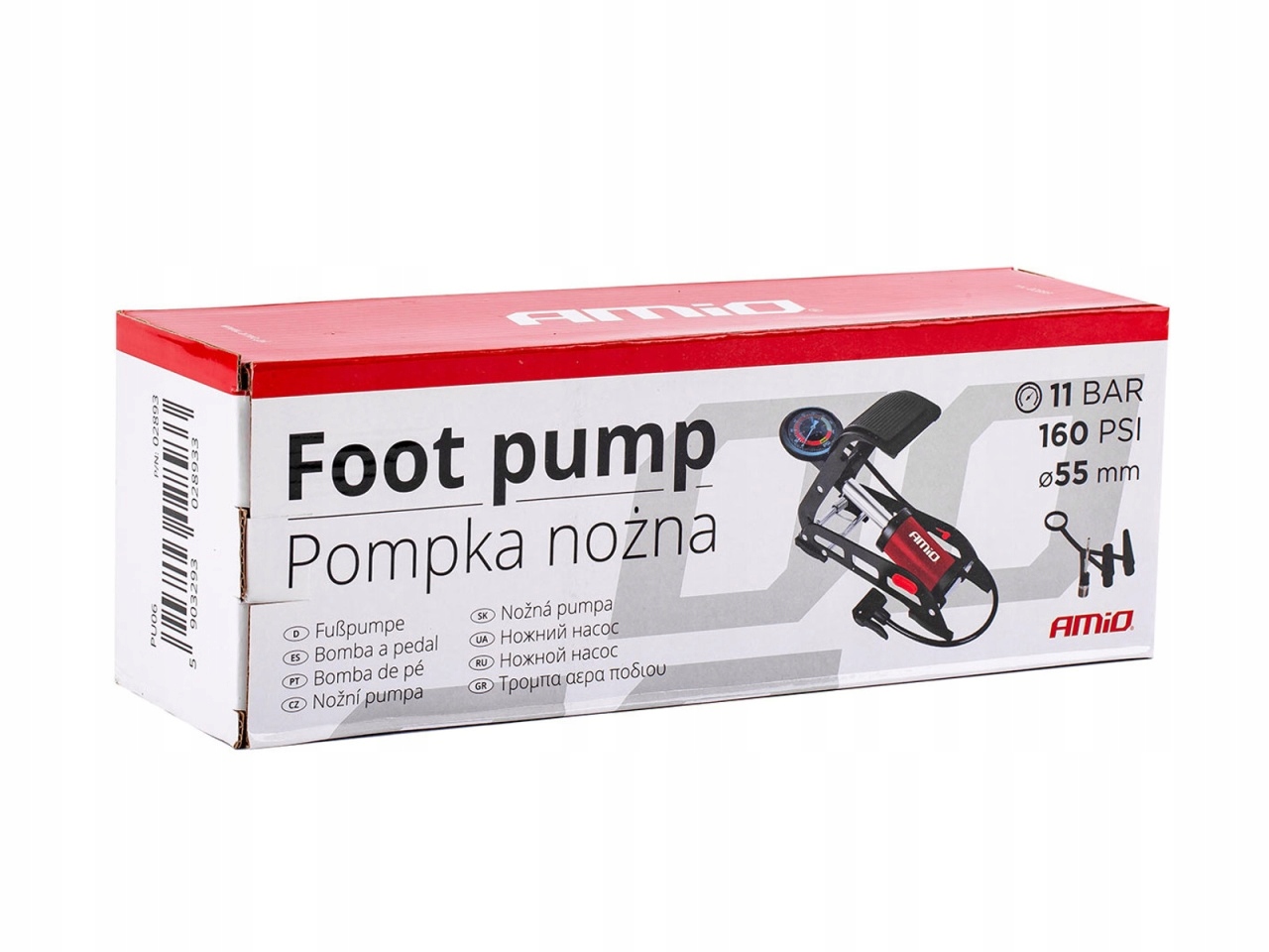 Двопоршневий ножний насос із міцною конструкцією, виготовлений із тисненого, лакованого сталевого листа товщиною 3 мм. Педаль покрита гумою для кращої стабілізації. Манометр, який легко зчитується, показує бар (0-11) і PSI (0-160). Міцний і гнучкий шланг довжиною 750 мм. Три адаптери в комплекті. Ідеально підходить для професійних послуг і домашніх господарств.