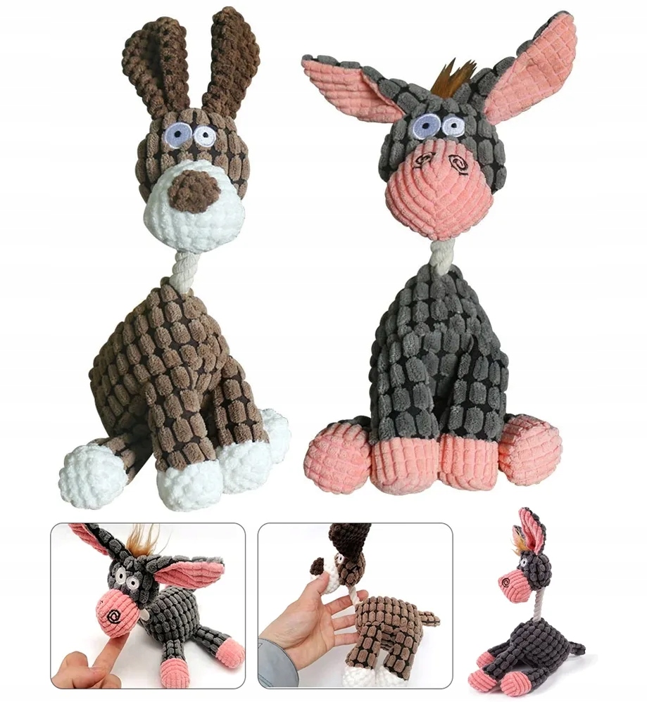 Іграшка для собаки, кота, плюшевий прорізувач, опудало, пищалка, собака-віслюк. Іграшка виготовлена з міцного матеріалу і дуже приємна на дотик. При натисканні/кусанні іграшка пищить, заохочуючи собаку продовжувати гру. Іграшка оснащена мотузкою, яка допоможе підкинути її під час принесення. Легкість іграшки спонукає вас тягнути та носити її.