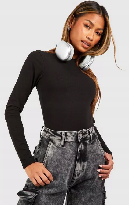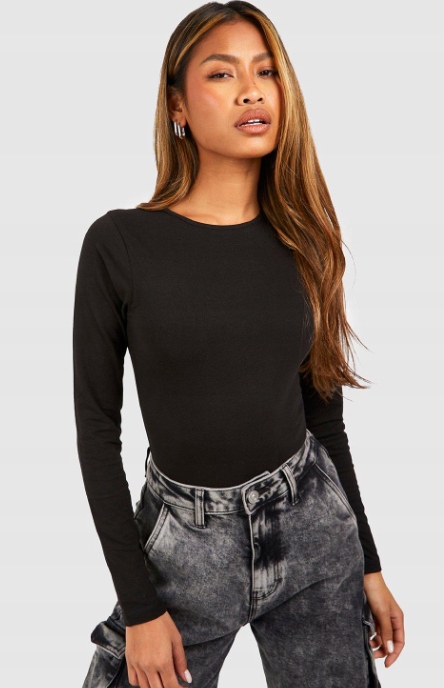 BOOHOO BODY CZARNE Z DŁUGIM RĘKAWEM BASIC 42 1EGG