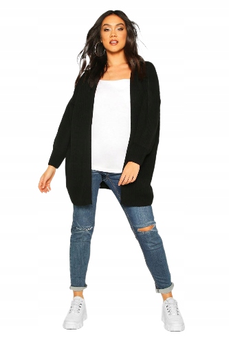 BOOHOO CZARNY KARDIGAN CIĄŻOWY BEZ ZAPIĘCIA R.S X320014
