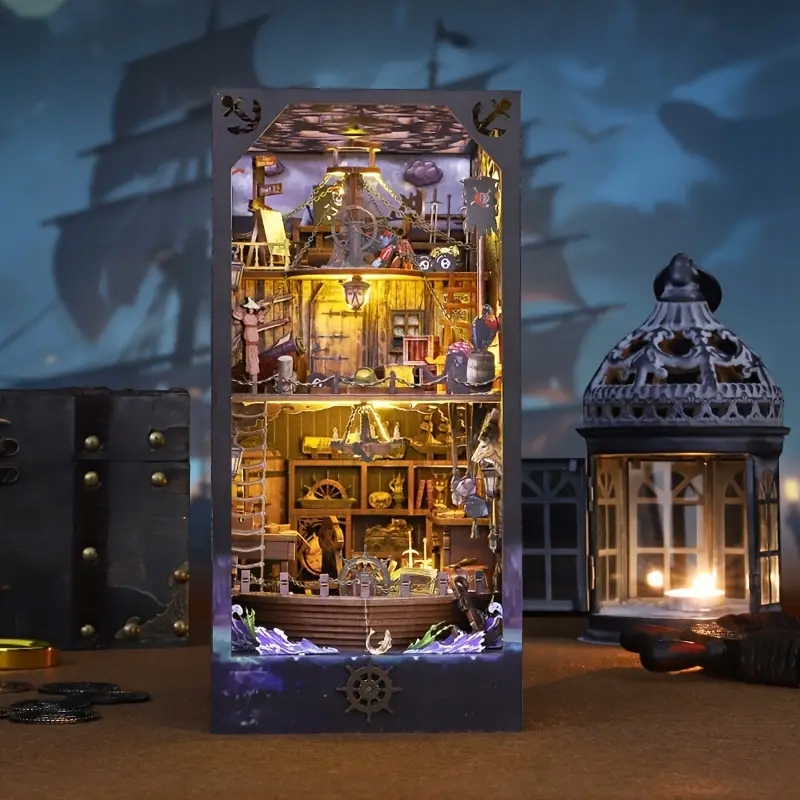 Book nook miniaturowy domek DIY PIRACI PIRACKI STATEK OKRĘT PIRATÓW
