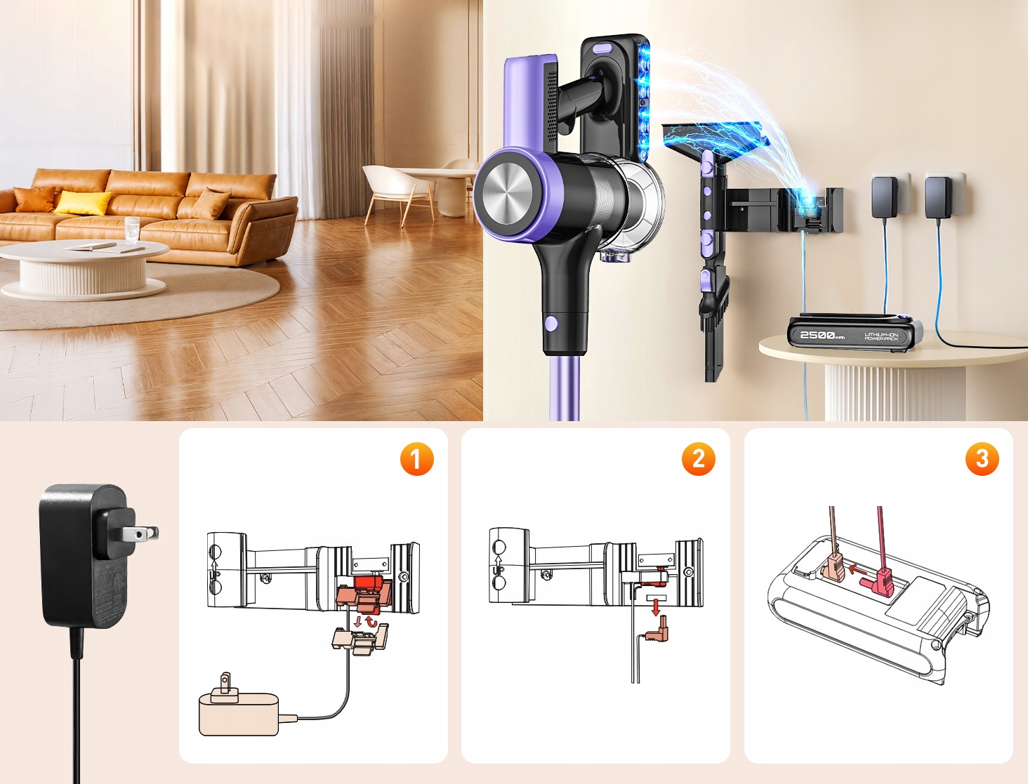 - ✔️Набір аксесуарів: 2 в 1, гребінець, настінний тримач - можливість ретельного прибирання в кожному куточку та зручного зберігання пристрою.