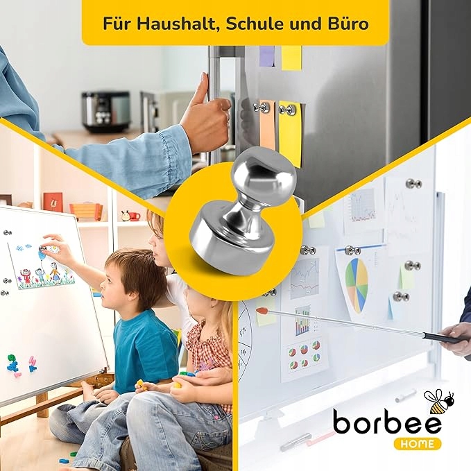 Магніти Borbee ідеально підходять як магніти на холодильник, магнітні дошки, вішалки для ключів або навіть пробкові дошки (з металевою підкладкою). Ідеально підходить для використання в офісі, школі та вдома - для закріплення фотографій, нотаток, документів, списків покупок або графіки.