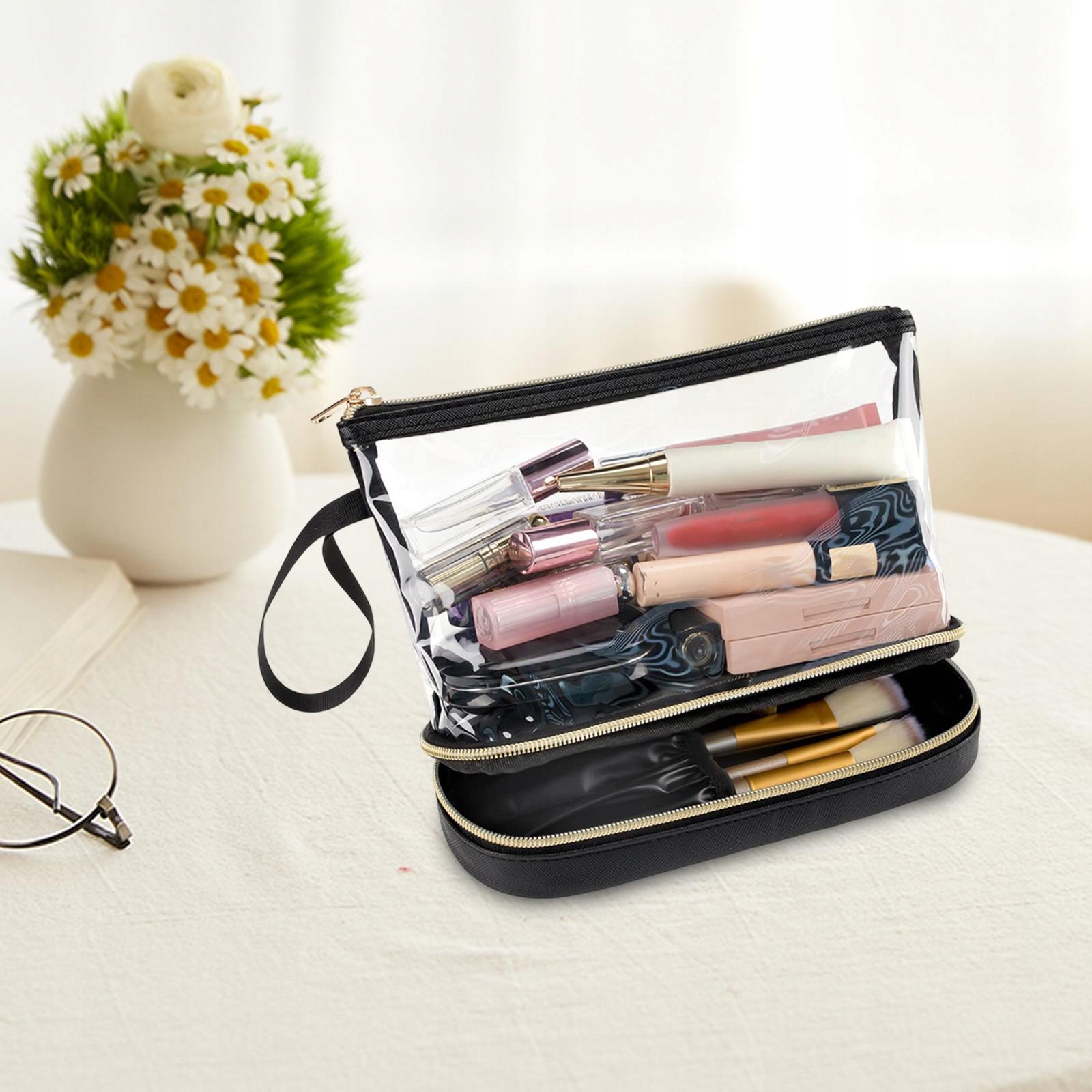 [Матеріал] Прозора косметична сумка, що складається з якості якості матеріалу ПВХ, який пропонує певний рівень водостійкості, забезпечуючи захист та легкий доступ до косметики, якщо це необхідно