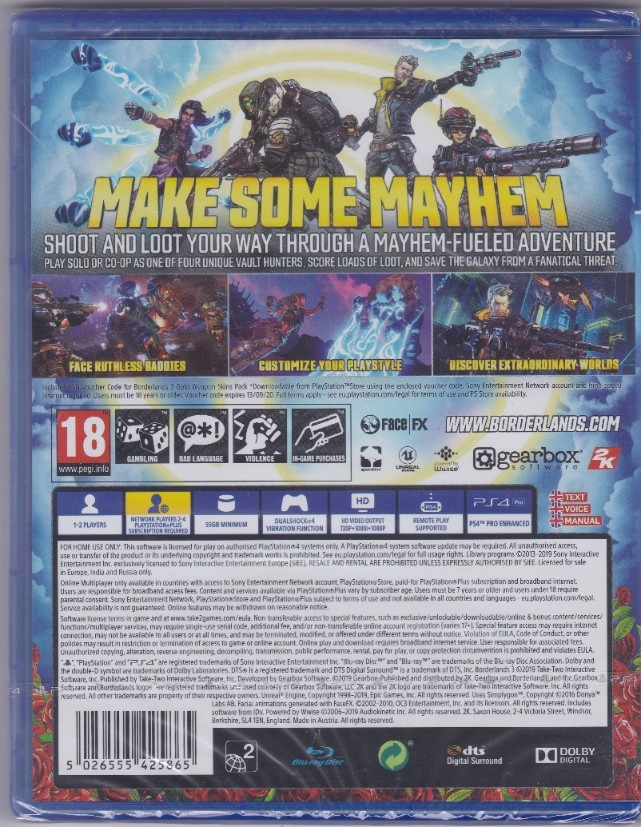 Оплачивая «BORDERLANDS 3 + НАБОР ЗОЛОТЫХ СКИНОВ ДЛЯ ОРУЖИЯ PS4 НОВИНКА», вы можете быть уверены, что данный товар из каталога «Sony PlayStation 4 (PS4)» будет доставлен из Польши и проверен на целостность. В цене товара, указанной на сайте, учтена доставка из Польши. Внимание!!! Товары для Евросоюза, согласно законодательству стран Евросоюза, могут отличаться упаковкой или наполнением.