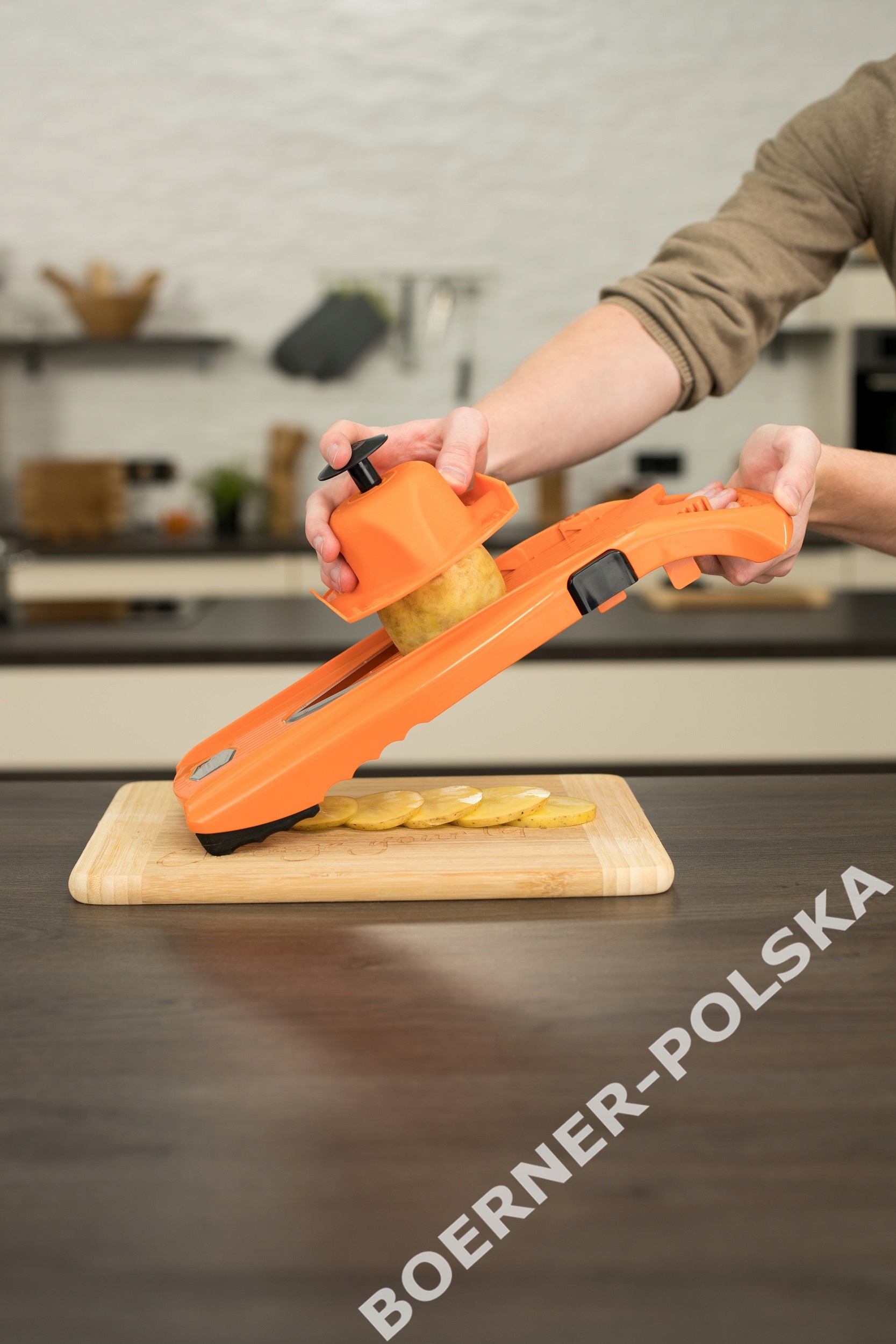 Завдяки спеціальному профілю слайсер зручний як для лівшів, так і для правшів, а завдяки нековзким ніжкам його можна використовувати на будь-якій поверхні, навіть на мокрій.