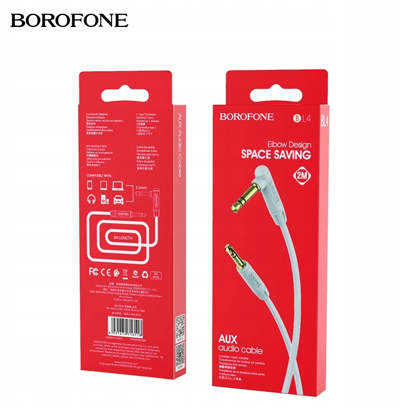 BOROFONE BL4 – це аудіокабель із двома роз’ємами 3,5 мм AUX Jack, довжиною 2 метри [2M ], у чохлі з матеріалу TPE, з одним наконечником під кутом 90 градусів.