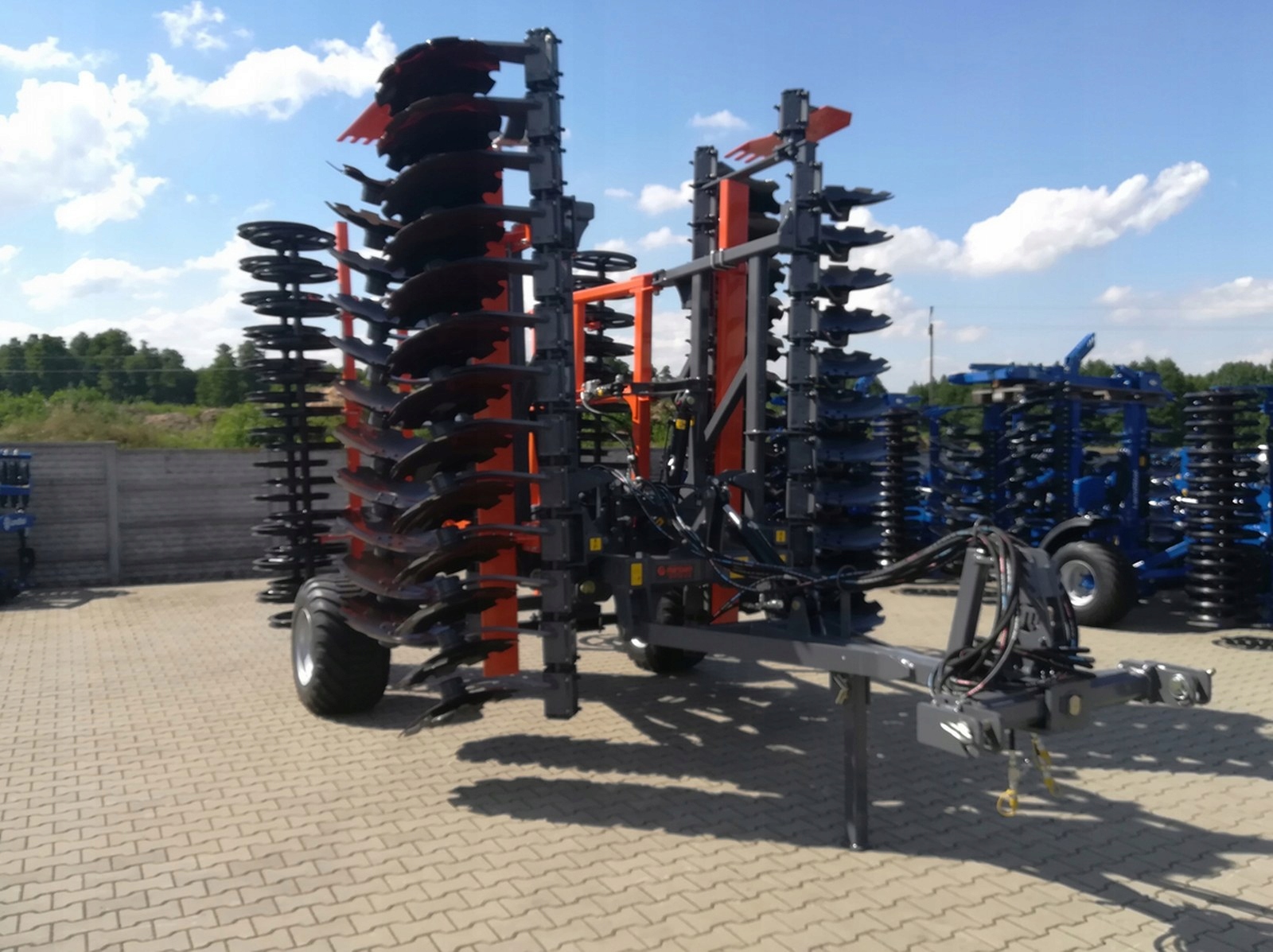 - Інтегрований з машиною транспортний візок - опорні колеса між рядом дисків і катком + дишло