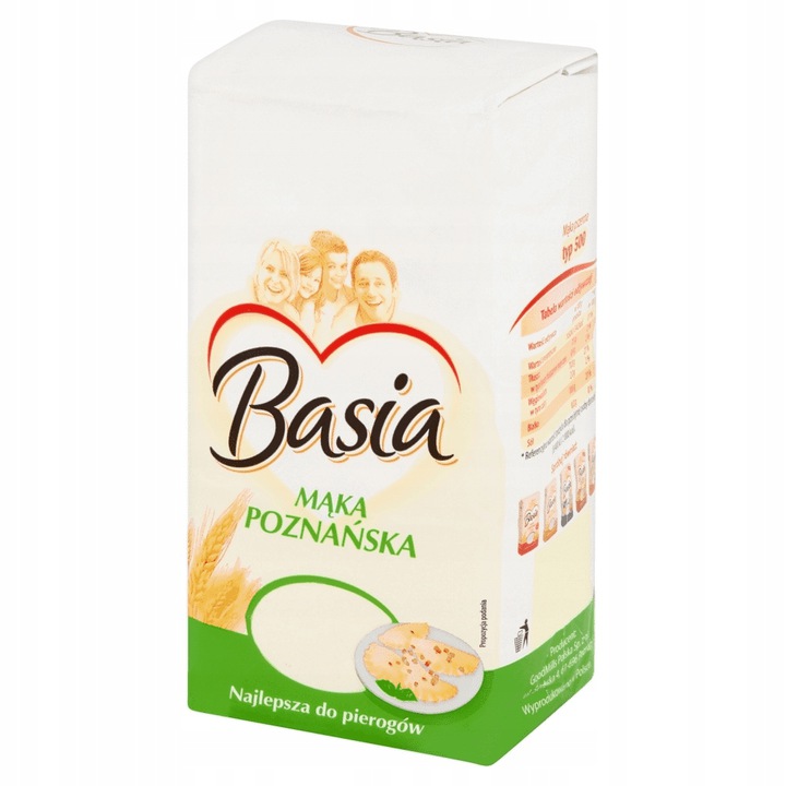 Борошно Basia Poznań – це пшеничний продукт. Тому це відмінне джерело клітковини, яка благотворно впливає на організм людини. Це борошно сорту 500 найвищої якості, яке ідеально підходить для пісочного тіста, листкового тіста і так званих «борошняних» страв, таких як пельмені або пельмені.