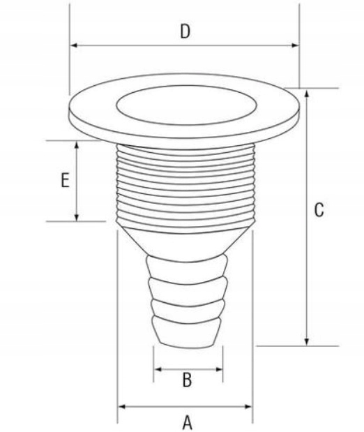 БІЧНИЙ ПРОХІД, ВІДВІД ВОДИ З ТРУБКОЮ 25 мм - з міцного пластику. Фланець з нержавіючої сталі AISI 316. Перехід стійкий до УФ-променів і солоної води. Довжина: 8,5 см.