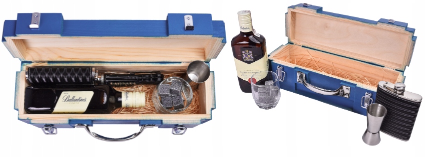 Коробка, яка ідеально підходить до пляшки Balantines 0,5 л, вміщує всі аксесуари: