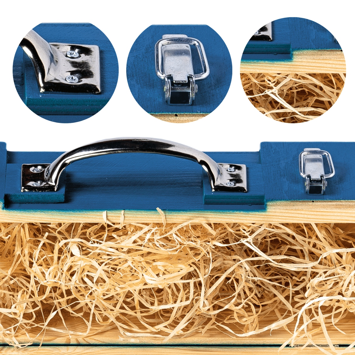 Обираючи наші ящики, ви отримуєте поєднання естетики та функціональності завдяки металевим пряжкам і ручкам, які гарантують не тільки стиль, але й міцність на найвищому рівні.