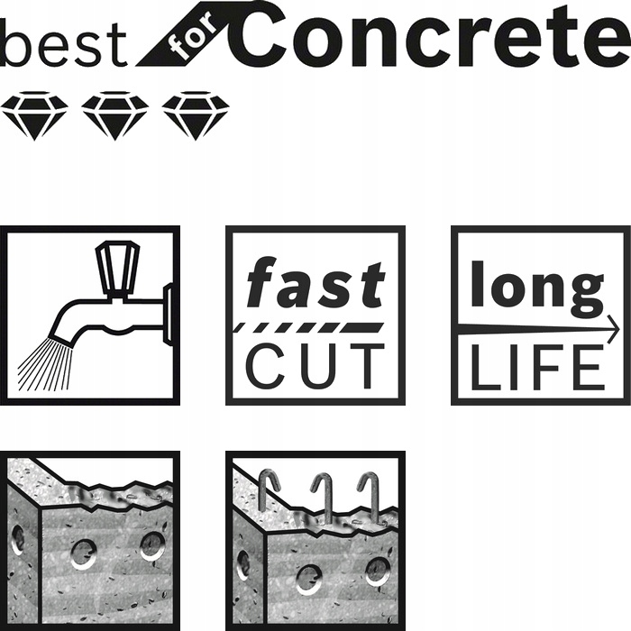Професійні алмазні свердла для мокрого свердління Best for Concrete забезпечують високу міцність при мокрому свердлінні бетону.