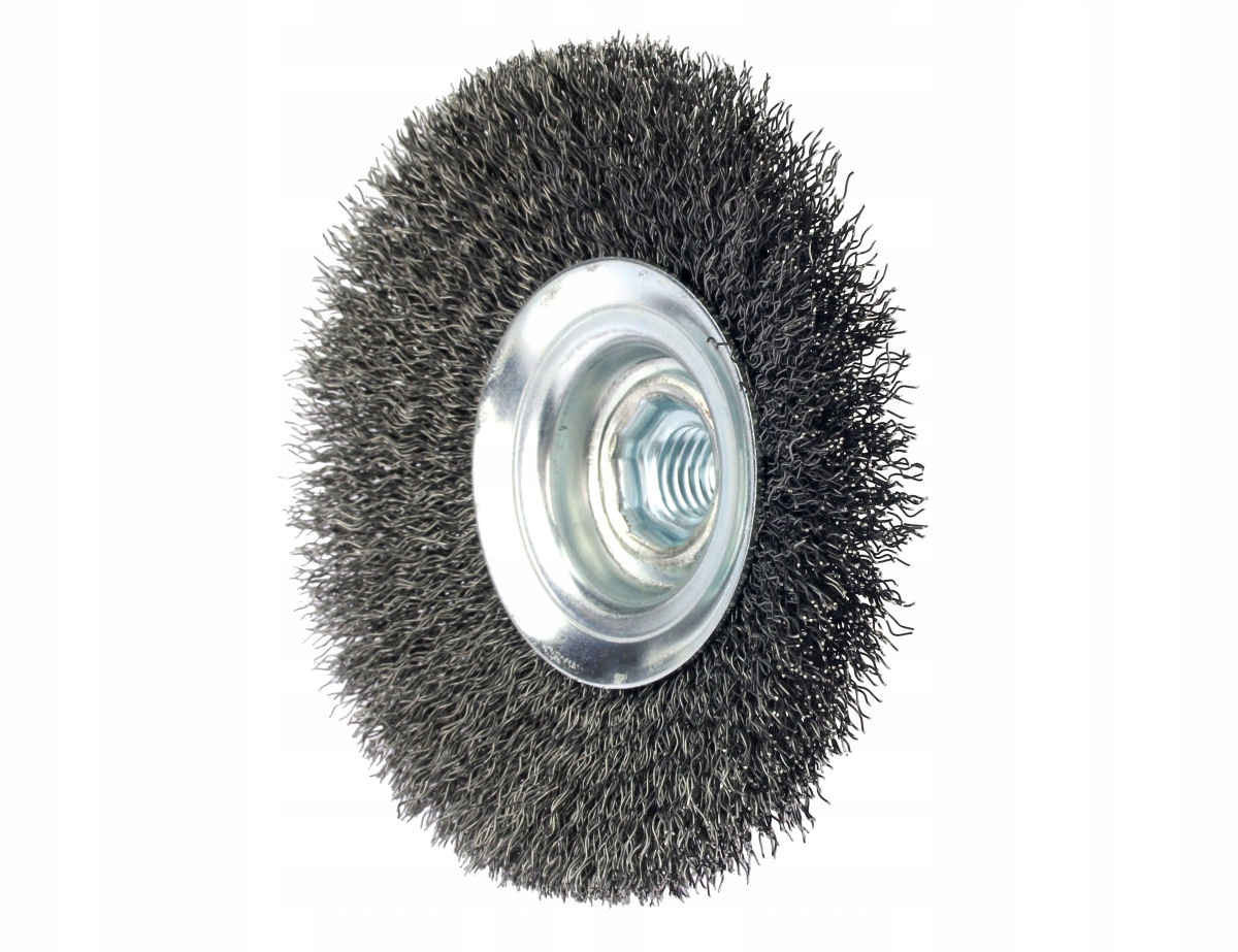 Конічна щітка з гофрованого дроту ідеально підходить для легшої роботи, пов’язаної з очищенням невеликих металевих поверхонь, канавок або країв із високою периферійною швидкістю