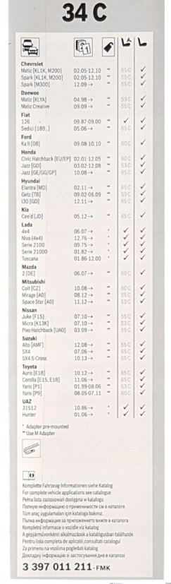 ЩІТКА ДІЗОЧИСНИКА BOSCH ECO 34C 340MM HOOK WIPER BLADE