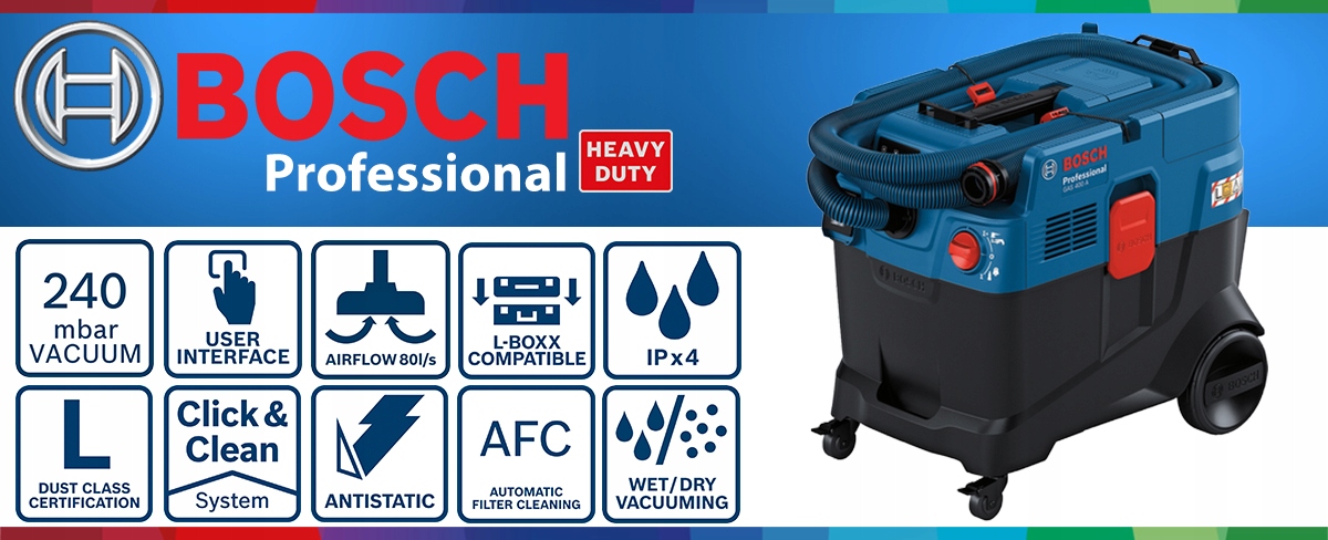 Якщо ваша робота пов’язана з виділенням дрібного та густого пилу, вам потрібен пилосос, який забезпечує постійну хорошу видимість, видаляючи пил із поверхонь і не засмічуючи фільтр, який уповільнює роботу працювати. Наша модель Bosch GAS 400 A Professional економить час, підтримуючи фільтр чистим завдяки технології AFC (автоматичне очищення фільтра), розробленій Bosch. Постійний сильний потік всмоктуваного повітря дозволяє виконувати роботу швидше. Модель Bosch GAS 400 A Professional забезпечує легше та швидше спорожнення пилозбірника завдяки використанню резервуара без шланга та окремо стоячій, стійкій головці двигуна.