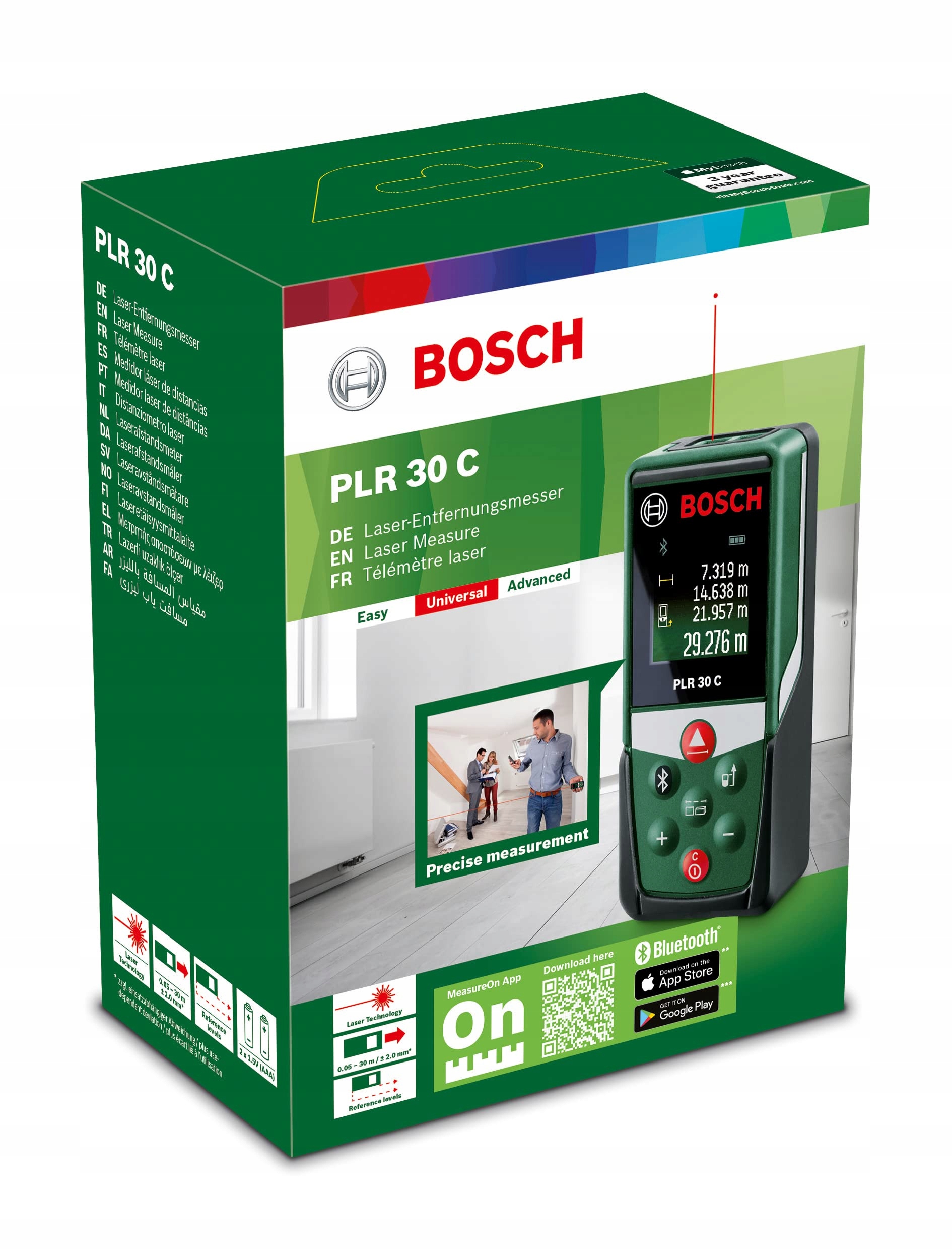 Bosch PLR 30 C лазерний діапазон - це вимірюючий пристрій з дуже високою точністю, що забезпечує точне вимірювання відстані до 30 м з точністю ± 2 мм. Він пропонує користувачам ряд можливостей, включаючи підключення до програми смартфона Bluetooth, що дозволяє передавати вимірювання на додаток, додавати фотографії, нотатки або замальовки.