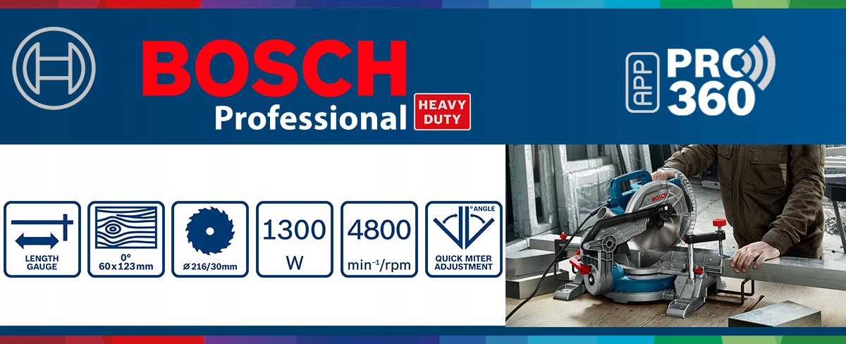 ТОРЦЮВАЛЬНА ПИЛА BOSCH 216 мм лазерна 1300 Вт з полотном GCM 216