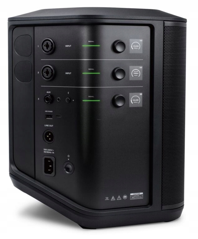 - Входи та виходи: 2 комбіновані входи XLR і 1/4 дюйма, вхід 3,5 мм, вхід Bluetooth, лінійний вихід TRS 6,35 мм (0,25 дюйма);