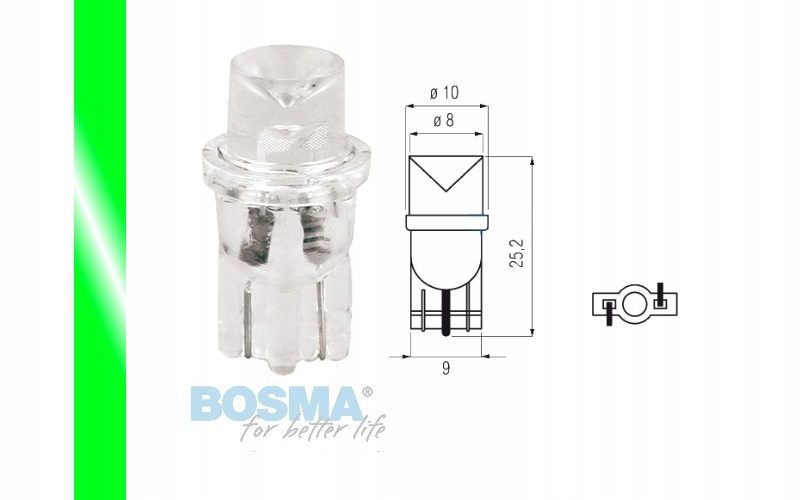 Bosma 12V 1*LED Standard T10 Green Wide View Blister
