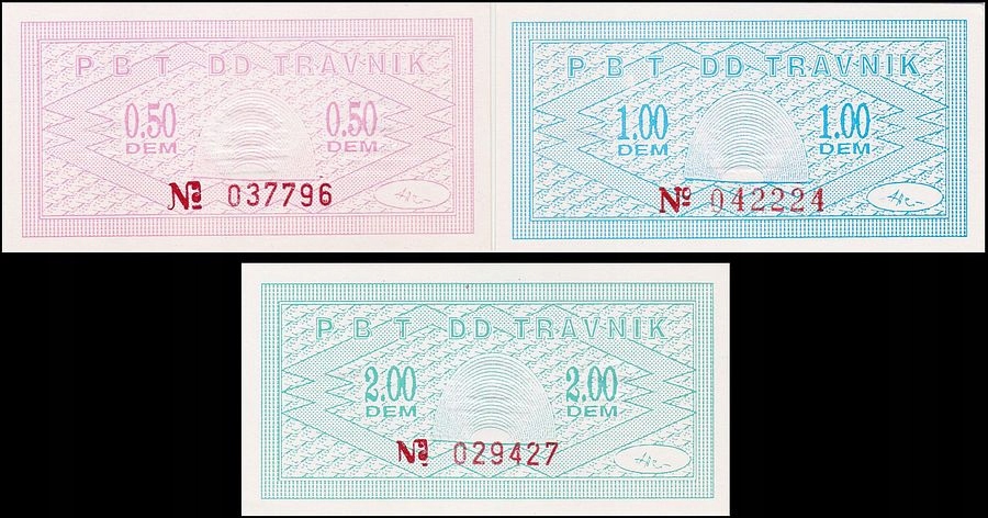 Боснія та Герцеговина, 0,50, 1 і 2 Дем (1992-1994) Банк-рукотворний, Травник