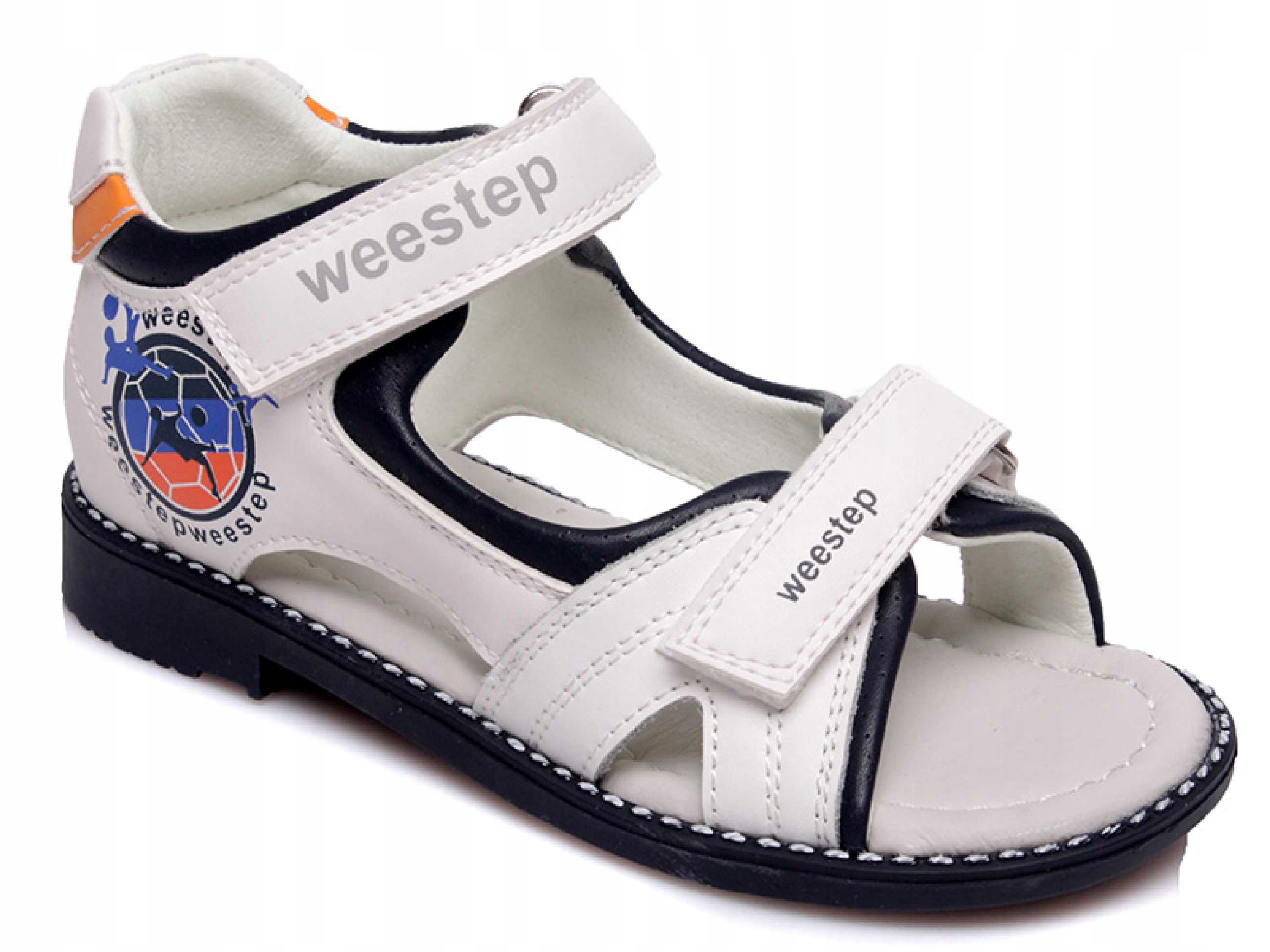 Сандалі Weestep міцні та надзвичайно зручні. Профільовані гнучкі підошви забезпечують оптимальну підтримку, тому не допускають деформацій (наприклад, плоскостопості), а також виготовлені з легкого ПВХ, що підвищує відчуття комфорту. Ремені не викликають подразнень і ранок, а міцні застібки-липучки надійно утримують взуття на ніжках дитини. Повітропроникна нековзна шкіряна ортопедична вставка всередині.
