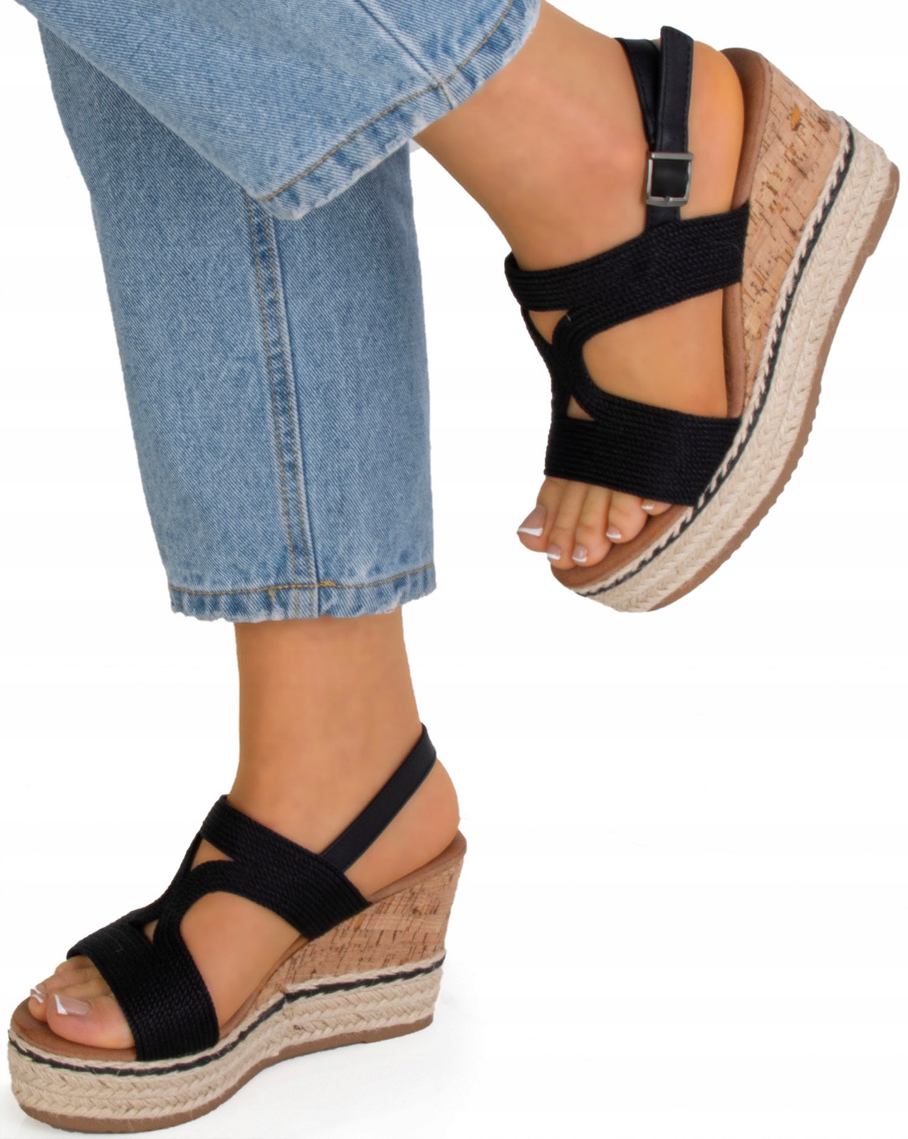 8836 Сандалі з чорним світлом Espadrilles для клину зручно 38