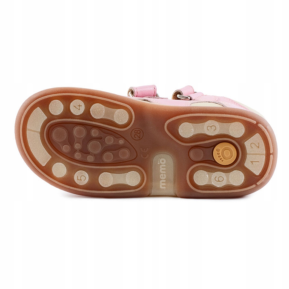 Для виробництва взуття MEMO використовуються матеріали найвищої якості. Верх і внутрішня частина взуття виготовлена з натуральної м'якої козячої шкіри, ідеально підходить для дитячої ніжки. Ця шкіра природним чином адаптується до стопи, що підвищує комфорт використання. Гнучка і пружна протиковзка діагностична підошва з системою пронумерованих зон дозволяє за допомогою потертості визначити, чи здорові ніжки вашої дитини.