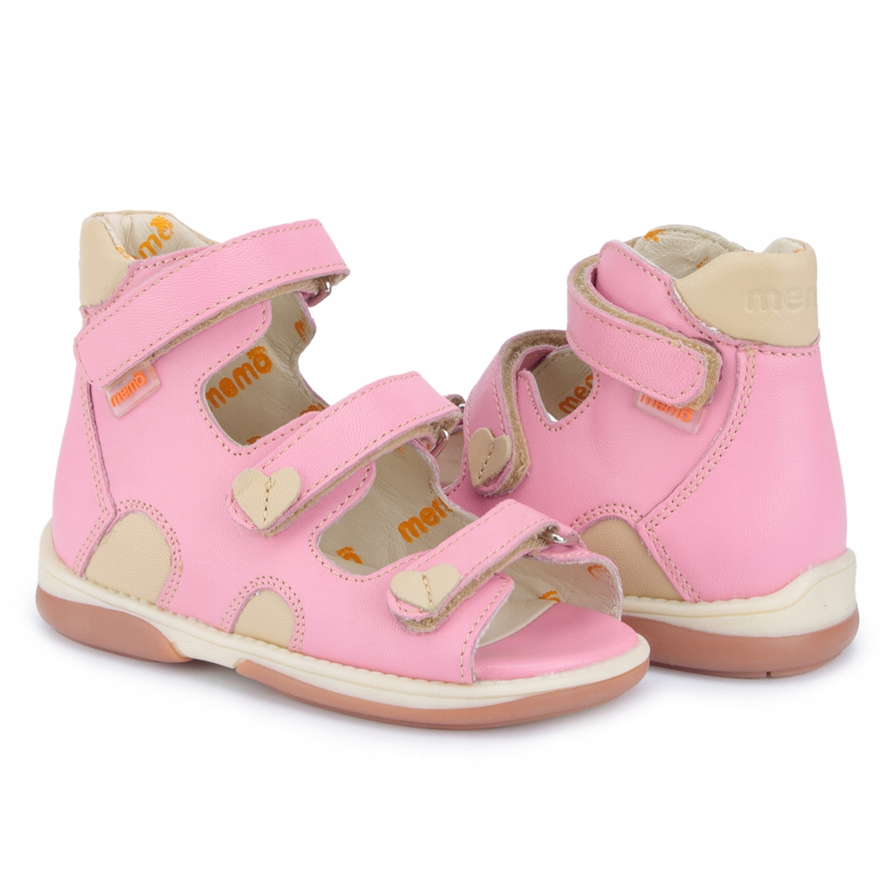 Модні діагностичні та профілактичні босоніжки для дівчаток з ніжним мотивом серця. Висока, на жорсткому каблуці. Має двоколірну гнучку діагностичну підошву Memo.