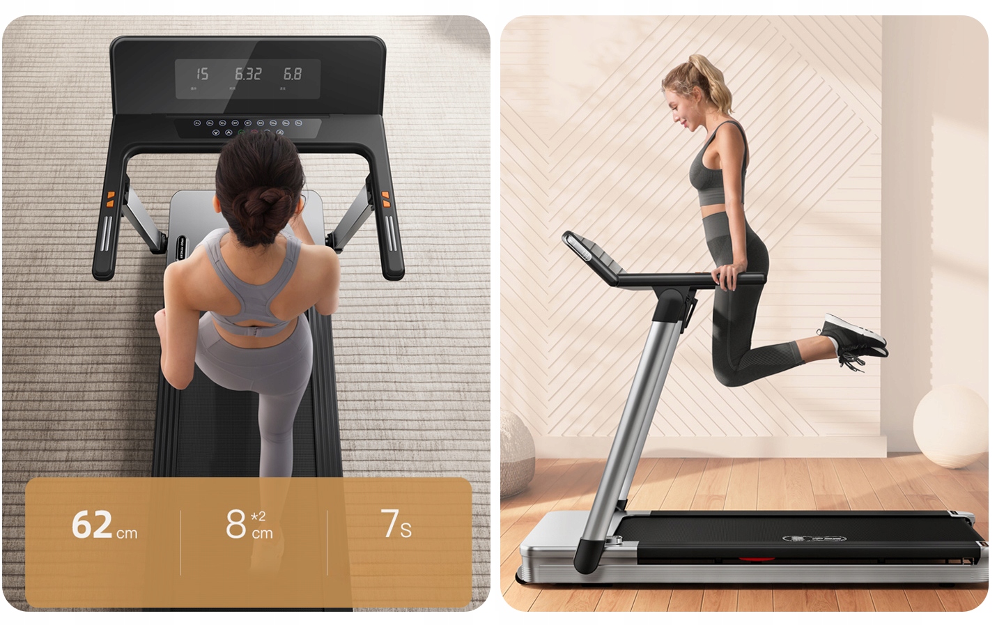 - Складання за 3 секунди - компактна конструкція, легке зберігання (всього 0,6 м²). Контроль тренувань та розваги під час бігу.