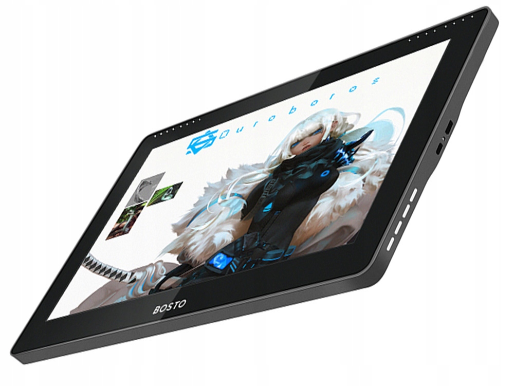 Графічний планшет BOSTO BT-16HD має 15,6-дюймовий екран із роздільною здатністю Full HD 1920 x 1080 пікселів. Технічні параметри планшета роблять його продуктом преміум-класу.Швидкість звітування про положення пера 266 RPS, датчик 8192 LPS (рівні тиску) іроздільна здатність сенсорного вводу 5080 LPIзабезпечують легкість роботи на планшеті, яка працює належним чином.