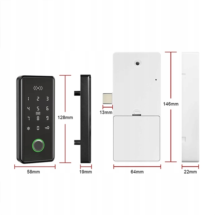 закупорка призначена для вертикального кріплення на передній частині шаф і ящиків. Працюючи від чотирьох акумуляторів AAA, він забезпечує надійну роботу протягом періоду до одного року. Додаток повідомить про майбутній розряд, тому неприємних сюрпризів не буде. Установка замка швидка і може зробити будь -хто.