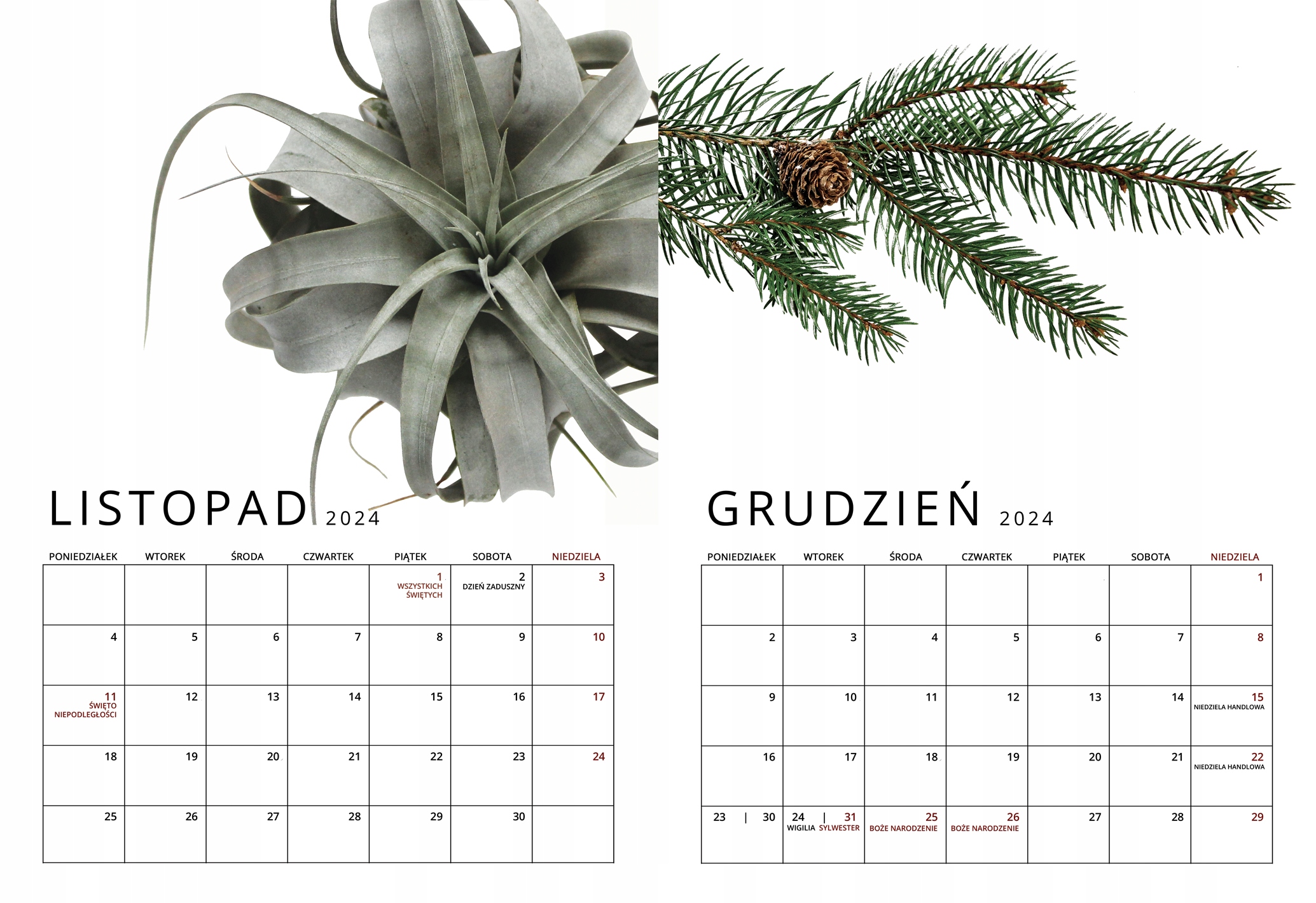 Настінний календар на 2024 рік з Ботанічний візерунок (кожного місяця з іншим мотивом), у двох форматах на вибір: A3 та A4 (доступний на іншому аукціоні).