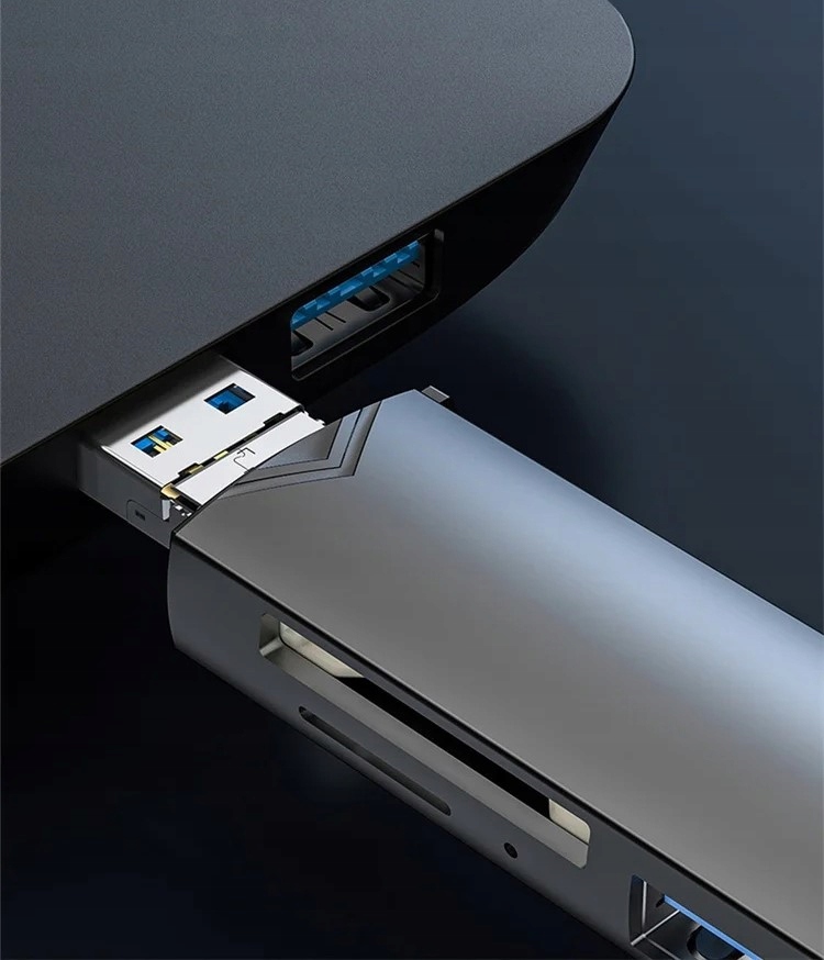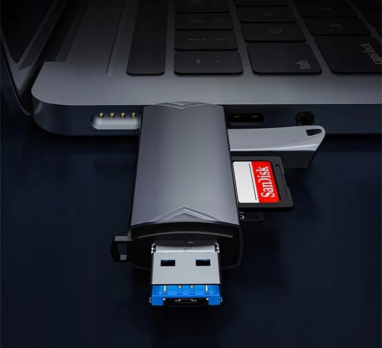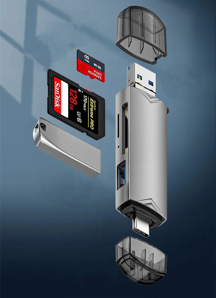 Цей сірий комп’ютерний аксесуар забезпечує комфорт і функціональність. Тепер ви можете підключати карти SD і microSD одночасно до комп’ютерів із портом USB 3.0 і USB-C.