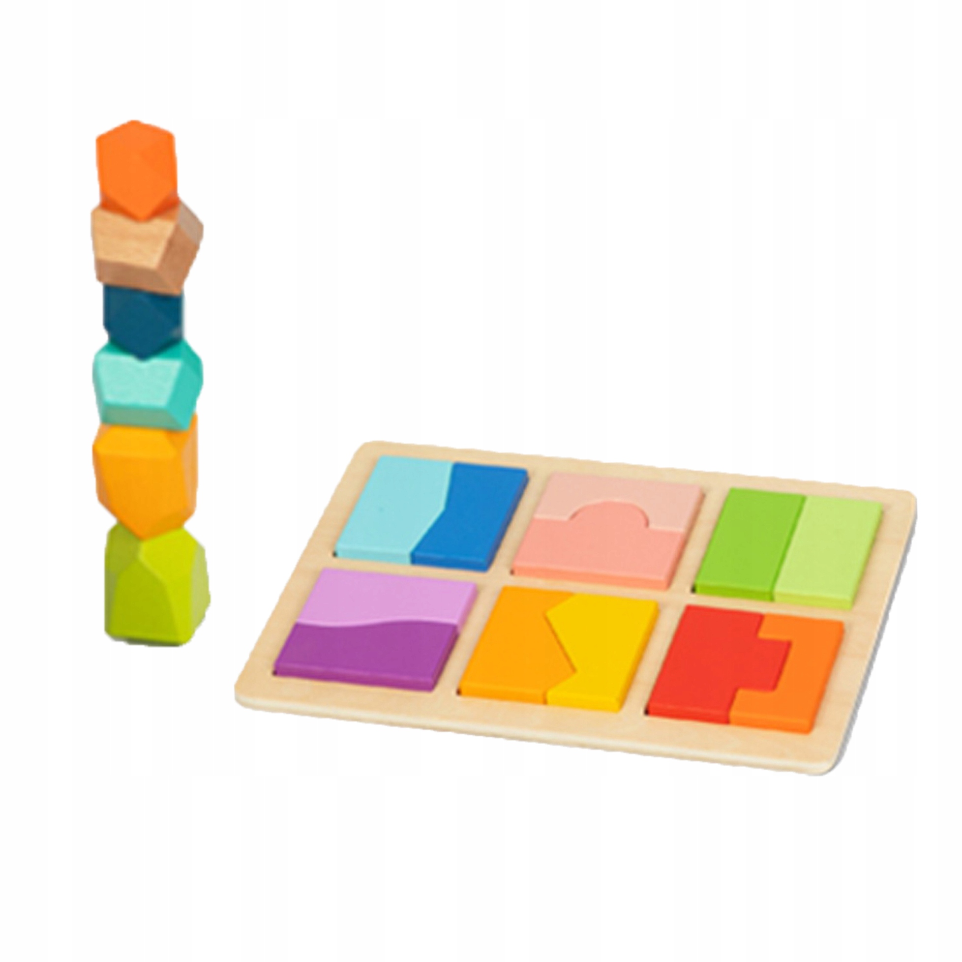 Ця іграшка містить 8 дерев’яних блоків у формі каменів, які мають багато плоских поверхонь і дозволяють складати різні конструкції та висоти. Це спонукає дітей приймати виклики, пов'язані з творчістю та уявою. Розвиває практичні навички , рухові навички , навички візуально-просторові , розпізнавання кольорів та логічне мислення . Блоки Камені - ідеальне рішення для батьків , які хочуть, щоб їх дитина розвивалася через розваги . Покладання дерев’яних каменів робить, здавалося б, легким завданням стати справжнім викликом.