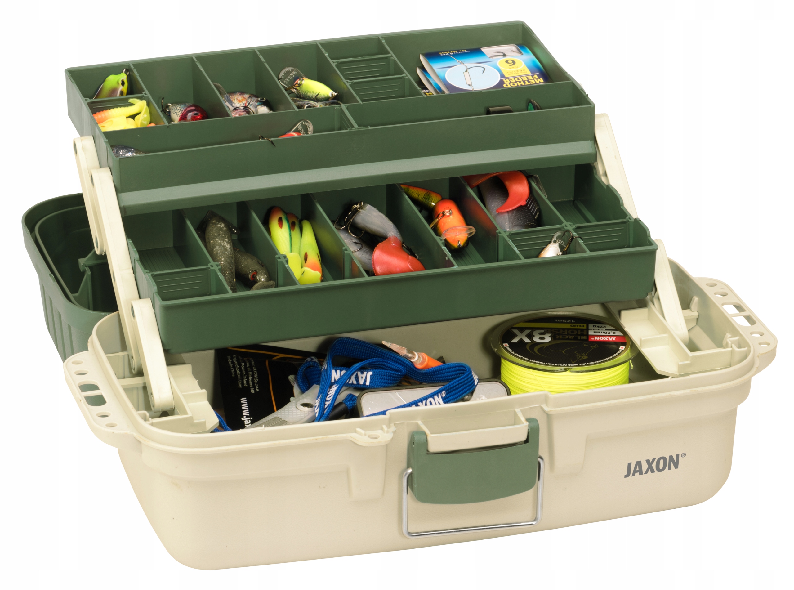 Високоякісна коробка передач Jaxon. Кожен рибалку дотягнеться до коробки, де він має легкий доступ до аксесуарів. Mistrall відповідає очікуванням великої натовпу, що вимагає рибалок, які цінують якість та надійність. Найкращі матеріали, постійні вдосконалення, адаптація до потреб, приємна ергономіка для очей, тому що рибалки все частіше досягають коробки Джаксона.