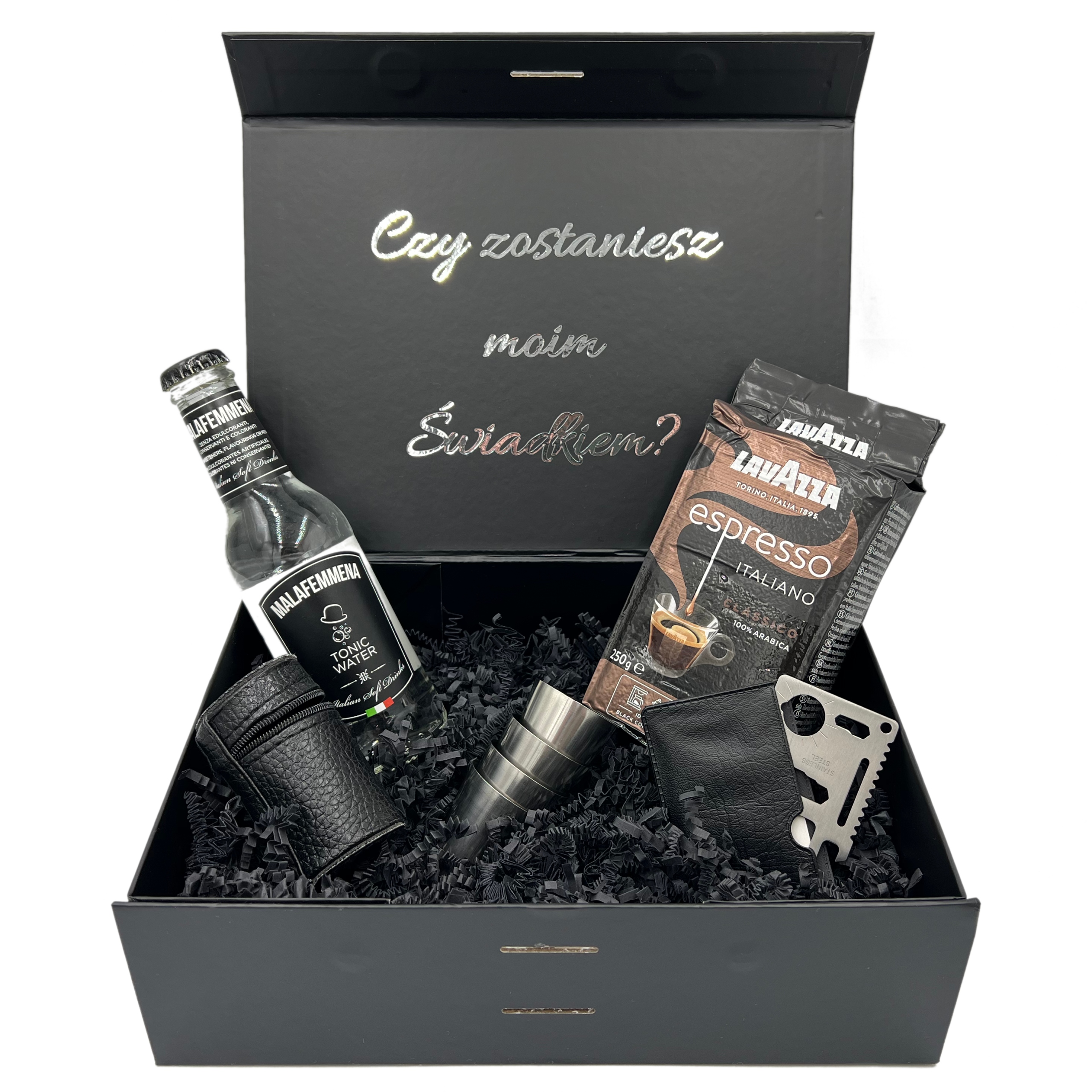 BOX PREZENTOWY dla ŚWIADKA PROŚBA O ŚWIADKOWANIE KIELISZKI KAWA ZAPYTANIE