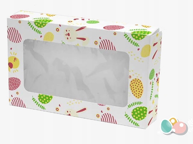 торт для торта з великодним малюнком, ідеально підходить як пачка Mazurka, Cupcakes та сирейк. Коробка з вікном у розмірі 21x12,5 см і висотою 7 див. Ідеальна упаковка для ваших клієнтів, функціональне вікно. Відповідна товщина текстури забезпечує стабільність.