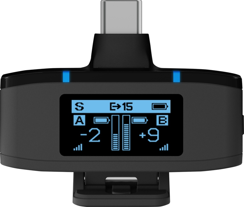 Ви можете використовувати передавач із зовнішнім мікрофоном 3,5 мм, лінійними пристроями або вбудованим мікрофоном відповідно до ваших потреб. Вихід TRS 3,5 мм, адаптери USB-Cand iOS Lightning дозволяють підключати приймач до камер, мікшерів, смартфонів, планшетів, ноутбуків тощо. Приймач має зарядний порт USB-C, який підтримує заряджання та живлення пристрою за допомогою адаптерів.