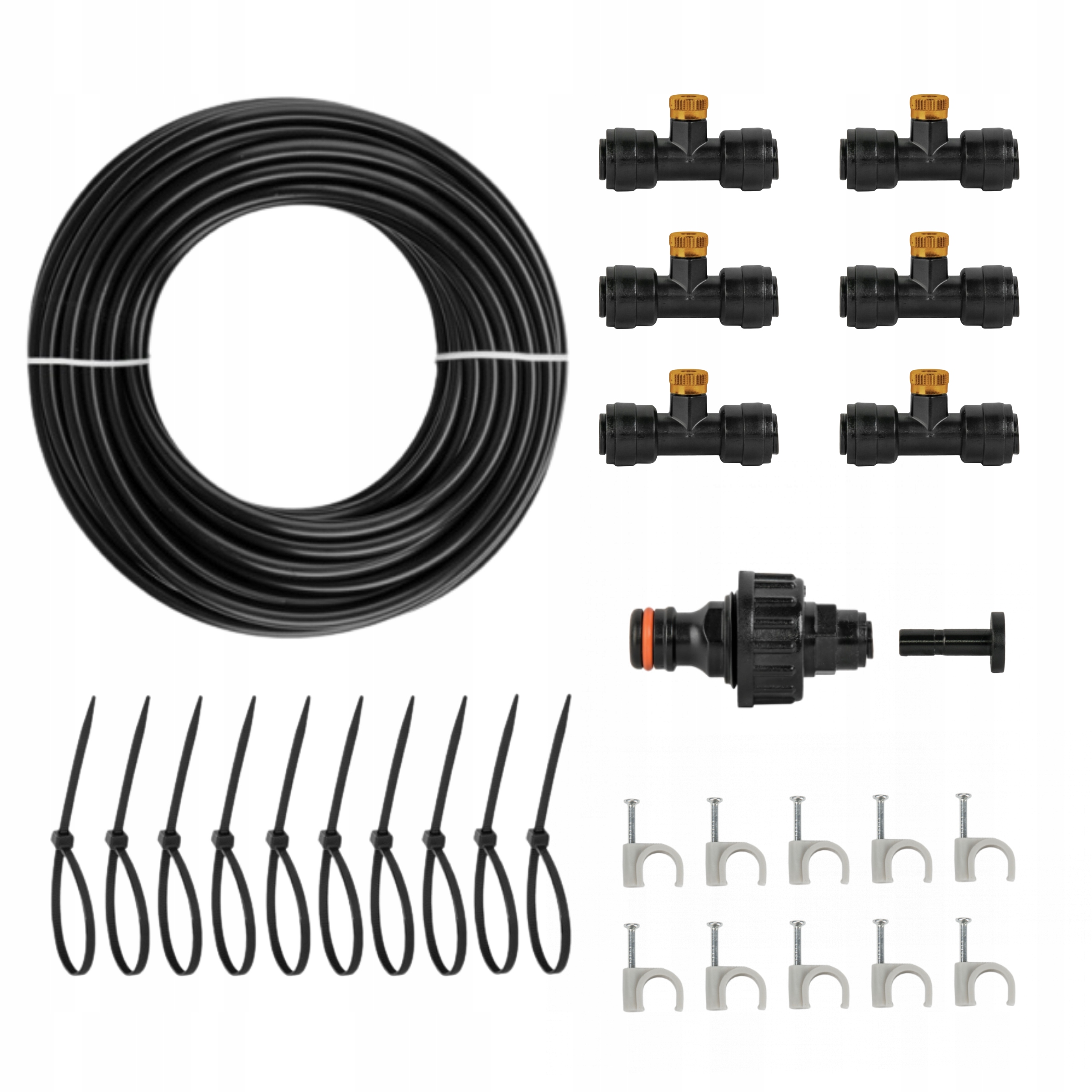 ❇️ Це інноваційний набір спринклерів, який ідеально підходить для спекотних днів, забезпечуючи приємне охолодження навколишнього середовища. Цей набір простий у встановленні та надзвичайно ефективний, а його елегантний дизайн робить його придатним для будь-якого саду, патіо чи тераси. Туманна завіса не тільки знижує температуру, але й допомагає боротися з комарами та комахами, зменшує запиленість повітря, створюючи більш комфортні умови для відпочинку на природі.