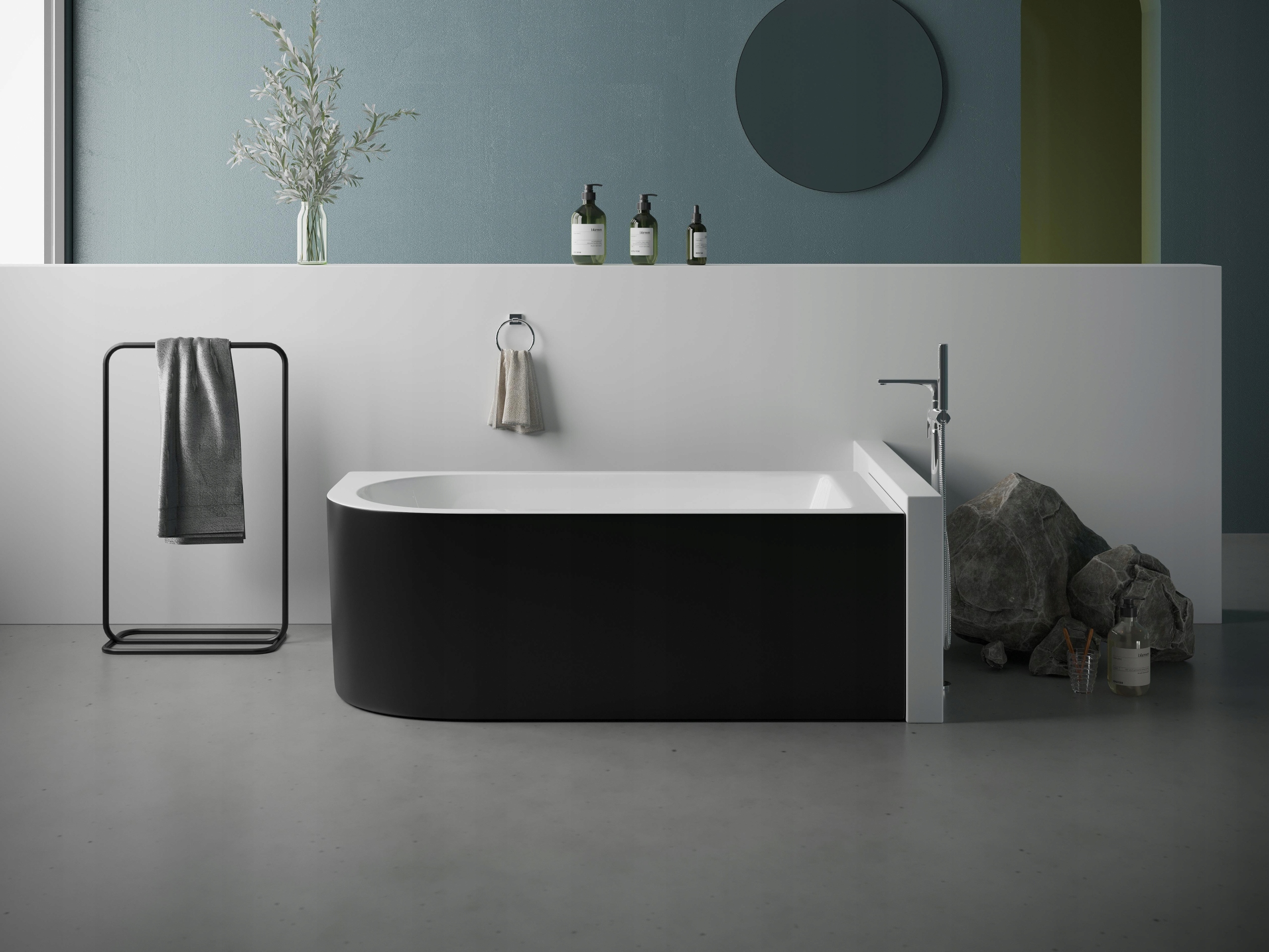 Ця модель ванни не має бокової та задньої стінок, що дозволяє приєднувати ванну безпосередньо до стіни та оптимально використовувати простір, особливо в невеликих інтер’єрах.