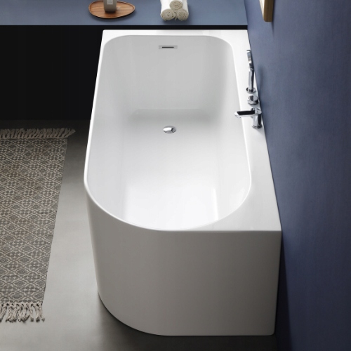 КУТОВА ВАННА RESTIA NEO виготовлена з високоякісного акрилу, армованого скловолокном і смолою. Міцний матеріал і ретельна обробка забезпечують стійкість до пошкоджень і зміни кольору. Колір білий. Продукт поєднує в собі переваги окремо стоячих ванн і ванн, що кріпляться до стіни.