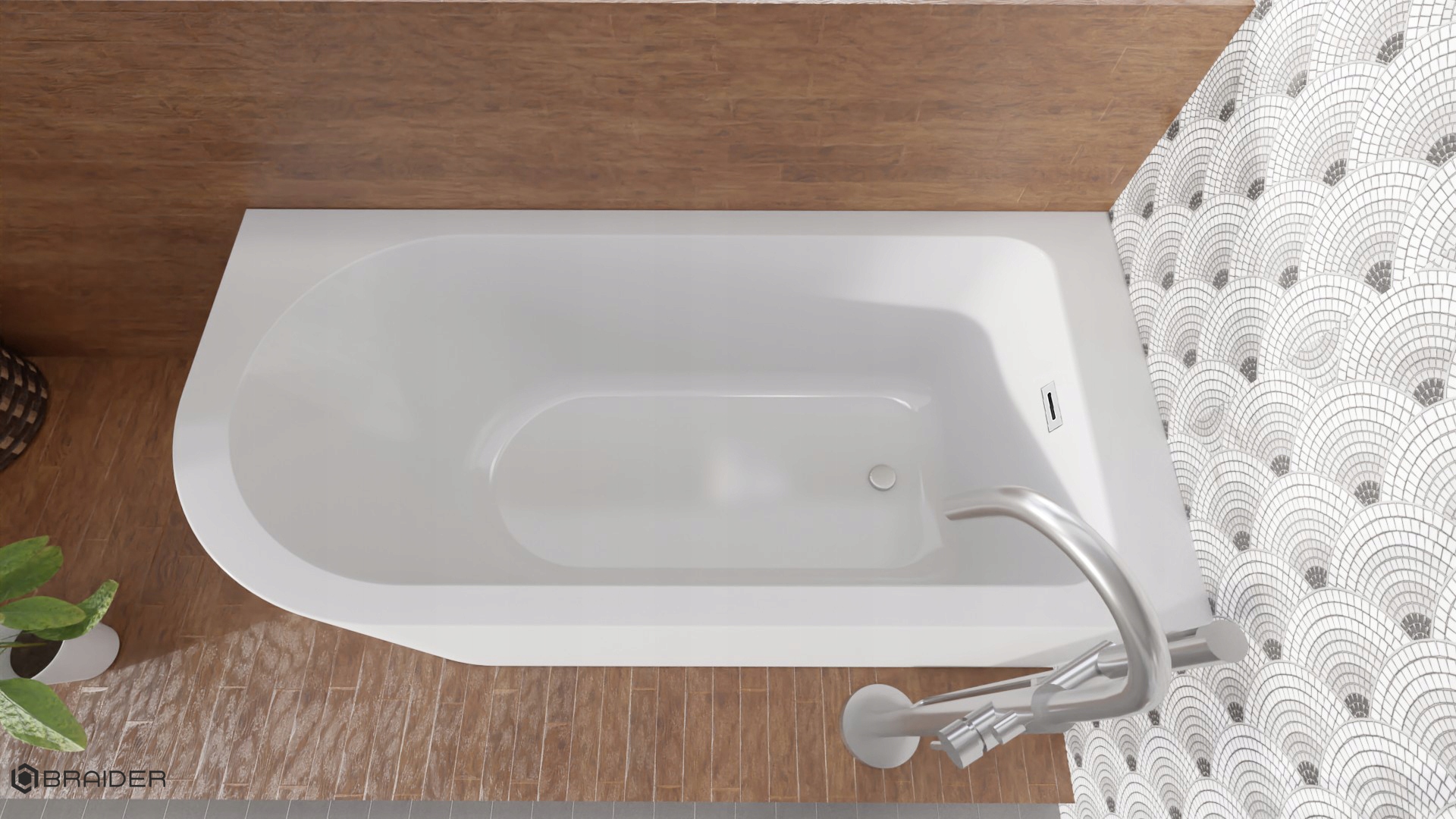 Також немає зазору між внутрішньою частиною та обшивкою, що робить легше підтримувати ванну в чистоті. Немає ефекту рухомого, млявого корпусу, відомого у вбудованих ваннах, оскільки передня частина ванни також додатково посилена та з’єднана зі сталевою рамою.