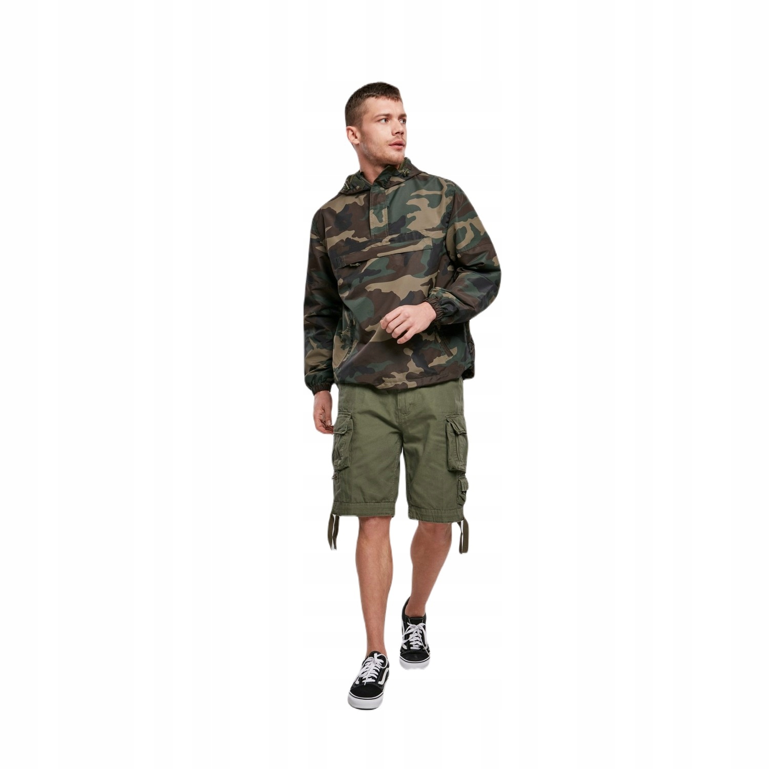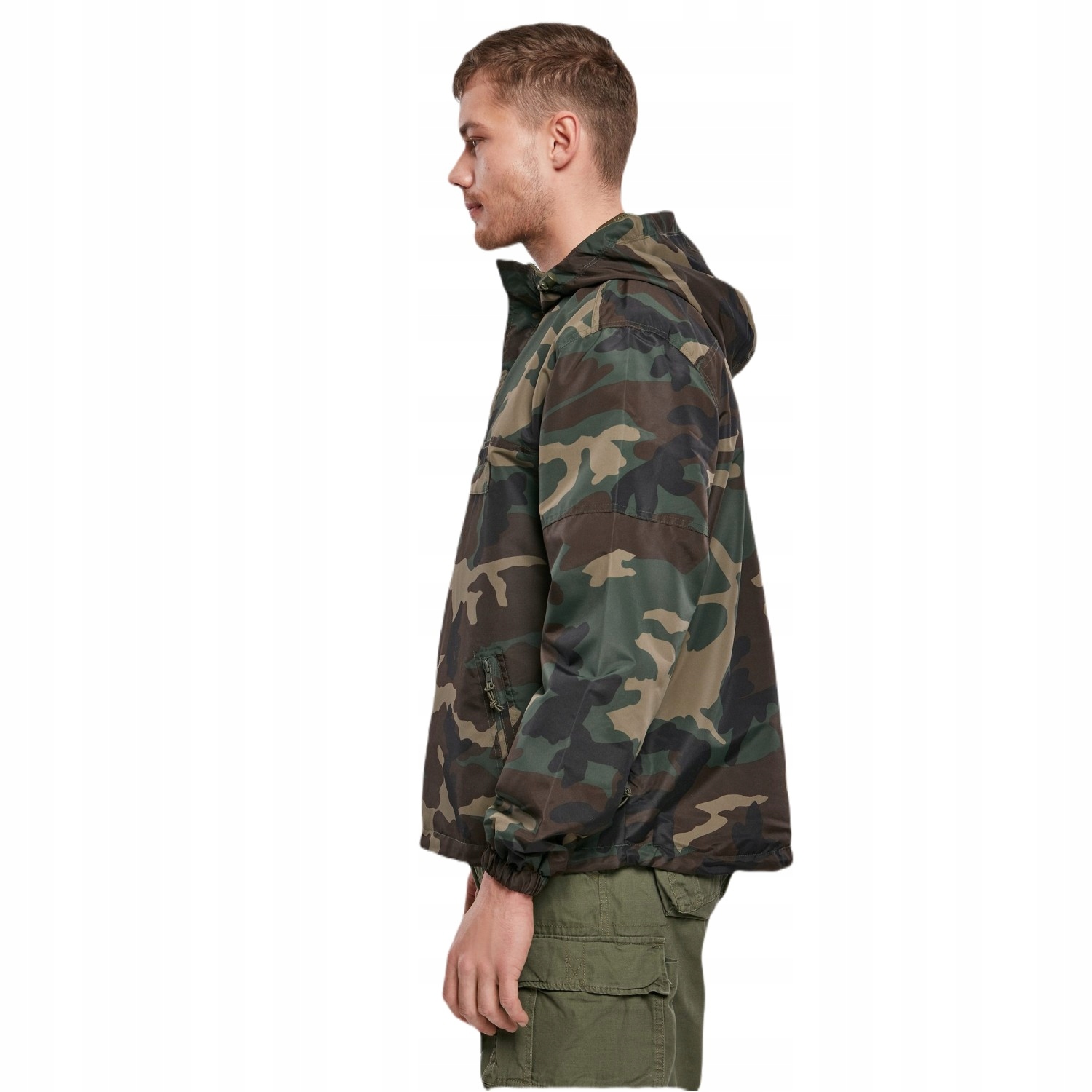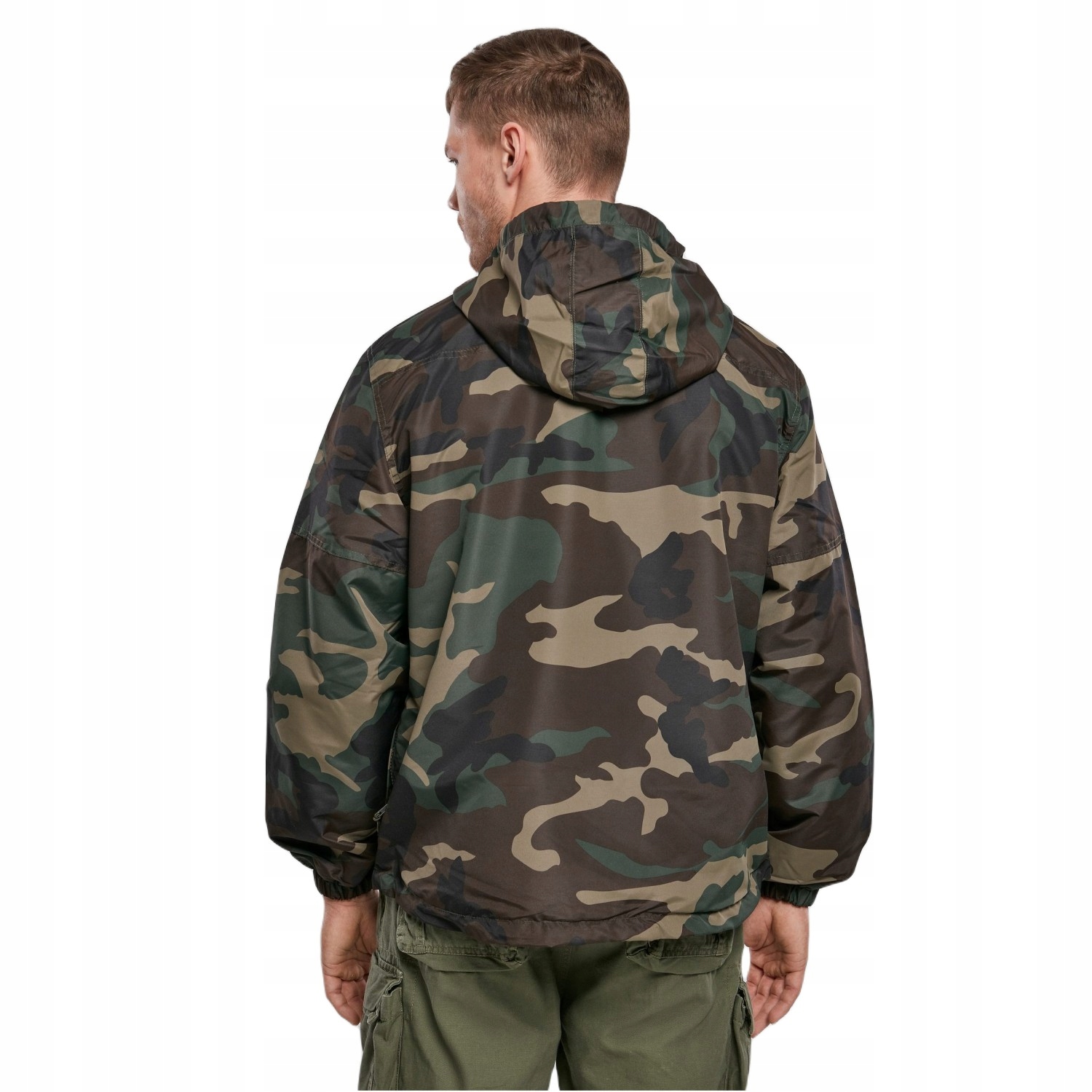 куртка з брендовим вітром Kangaroo Summer Windbreaker (3162.10) у камуфляжі US Woodland -це піджак проти -милдер та дощова вода. Виготовлена німецькою компанією одягу brandit , вона характеризується промисловими рішеннями. Ця модель літня версія , яка захищає від легких опадів та делікатного весняного вітру.