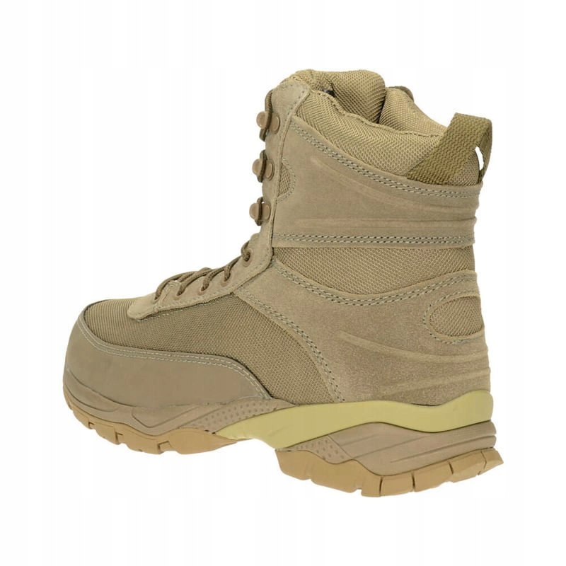 Тактичне взуття наступного покоління буде справлятися в будь -якій місцевості. Завдяки поєднанню замшевої шкіри та нейлонової сітки циркуляція повітря всередині взуття знаходиться на відповідному рівні . Система шнурівки з 8 кишками полегшує швидке фото та надягання взуття. Бічна частина підошви виготовлена з м'якої піни EVA. Завдяки цьому комфорт завантаження взуття дуже високий . Це рішення впливає на демпфування поштовхів та неприємних коливань , до яких стопа може бути викрита під час динамічного руху в лісі та скелястій місцевості.