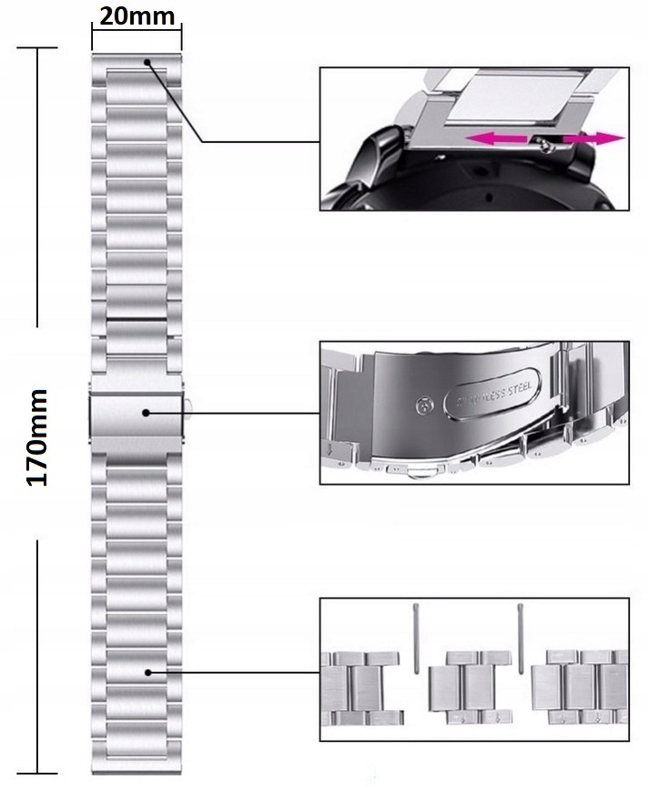 Bransoletka Stalowa / UNIWERSALNA / 20mm / CZARNA