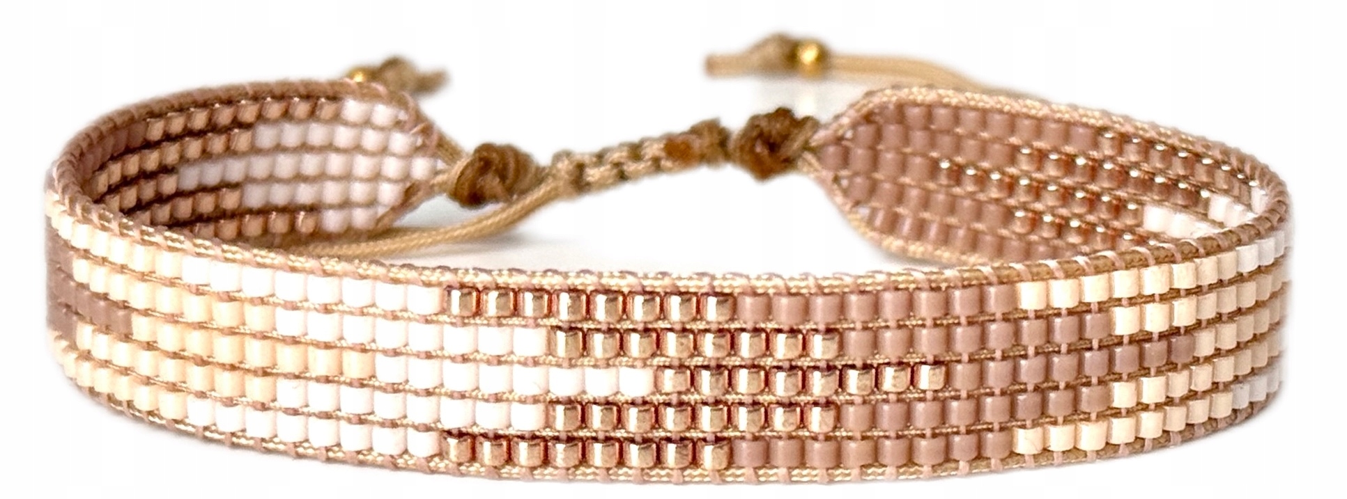 Bransoletka tkana z koralików Miyuki etno beżowa kremowa + złota